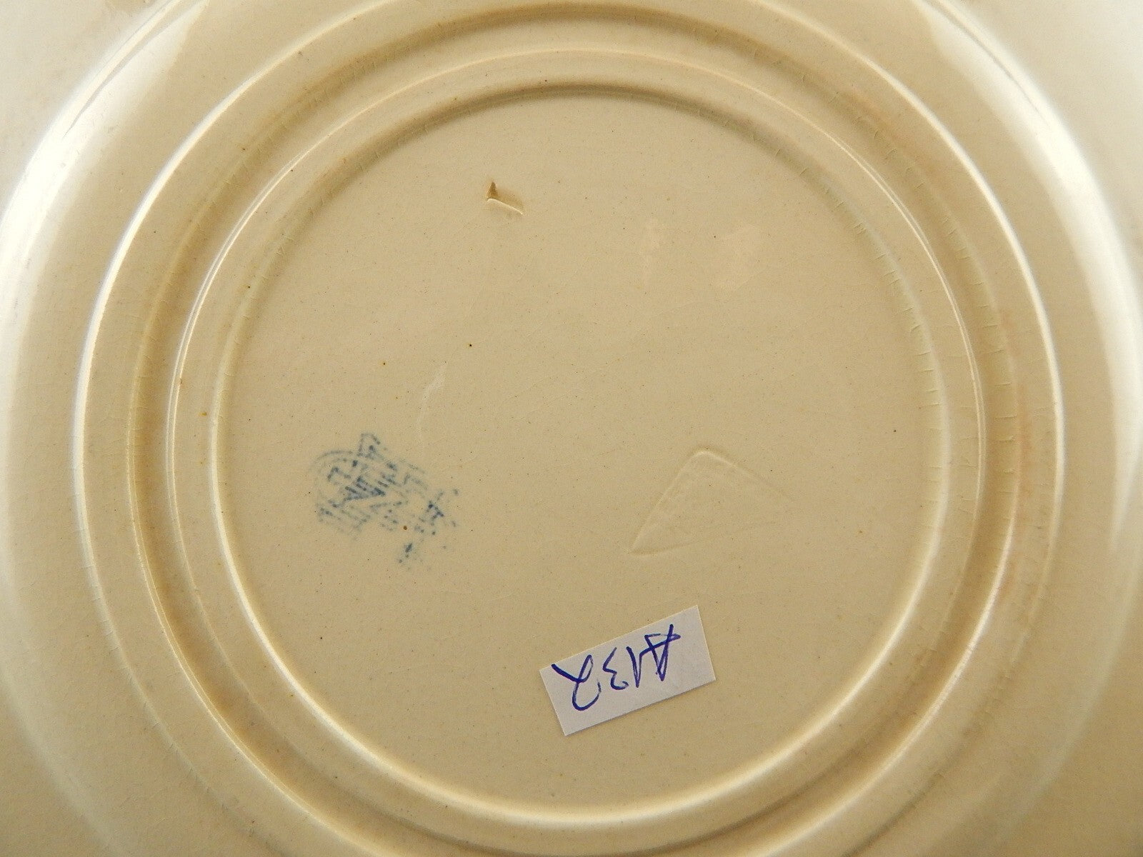 ANTICO RARO DEL 1875 PIATTO CM 22,5 CERAMICA GIEN DECORO BLU ALLA ROUEN