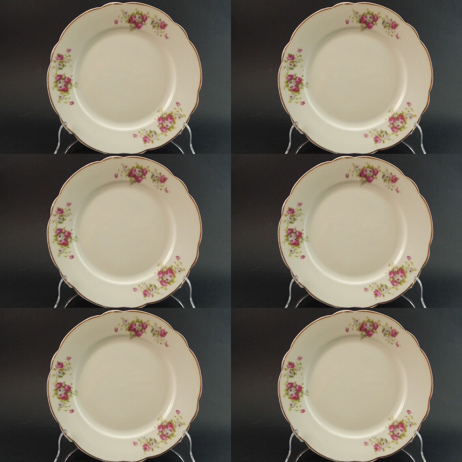 ANTICO RARO LIMOGES SERVIZIO 6 PIATTI PIANI PORCELLANA FINE 800 BOUQUET DI ROSE