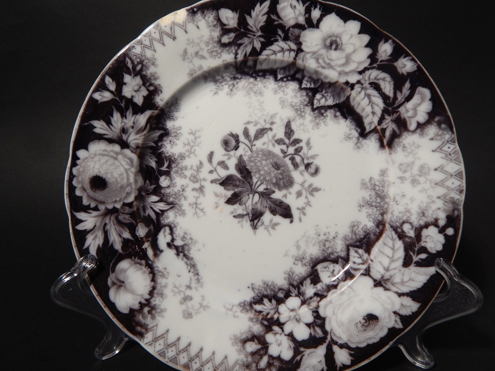 ANTICO RARO PIATTO CERAMICA DISEGNO JARDINIERE VILLEROY & BOCH FINE '800 difetto