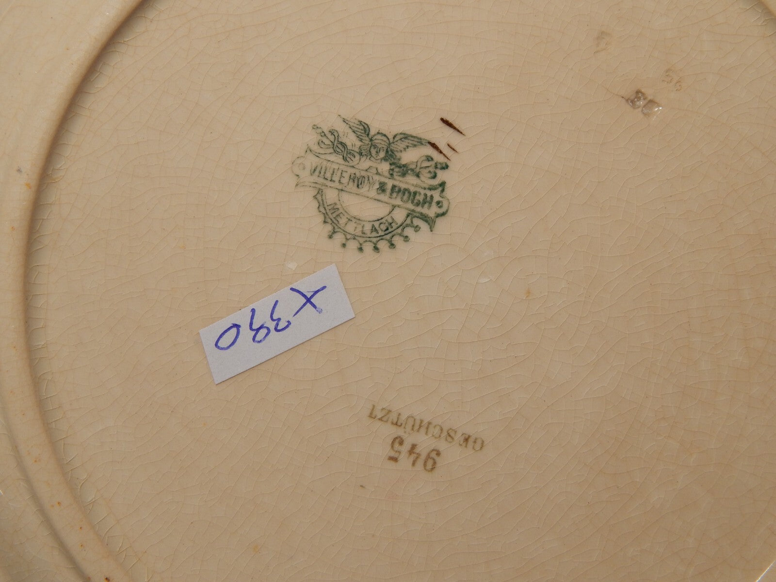 ANTICO RARO PIATTO CERAMICA VILLEROY&BOCH METTLACH DI FINE 1800 CM 23 DIFETTO