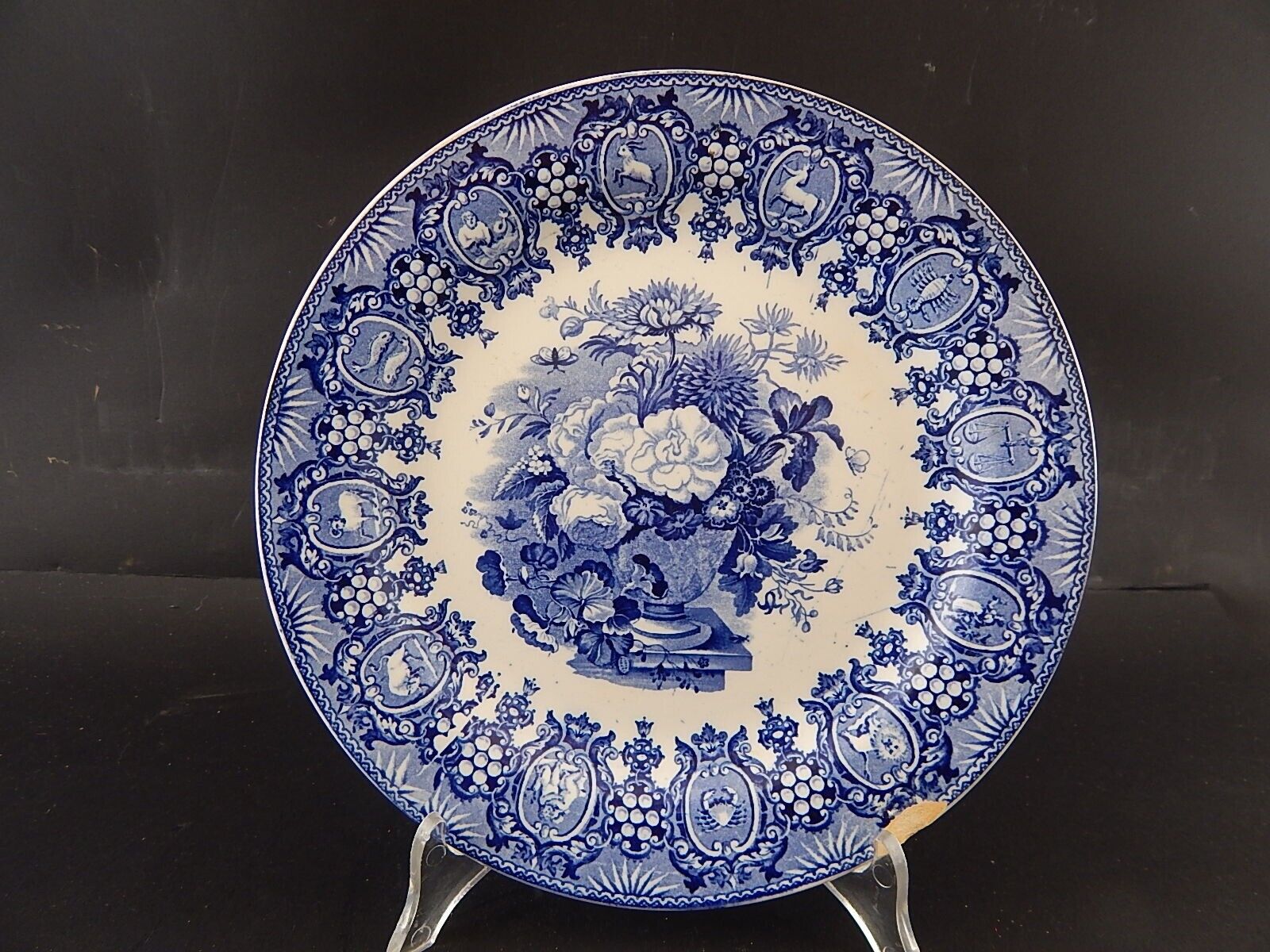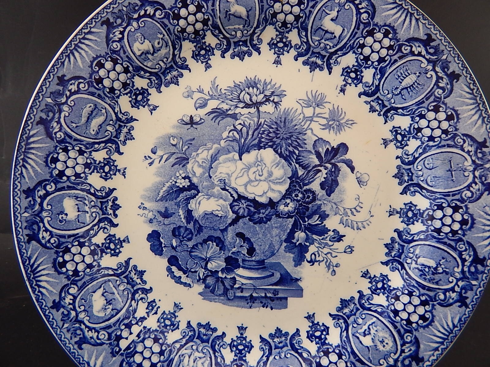 ANTICO RARO PIATTO PORCELLANA WEDGWOOD SEGNI ZODIACALI META' '800 BIANCO BLU
