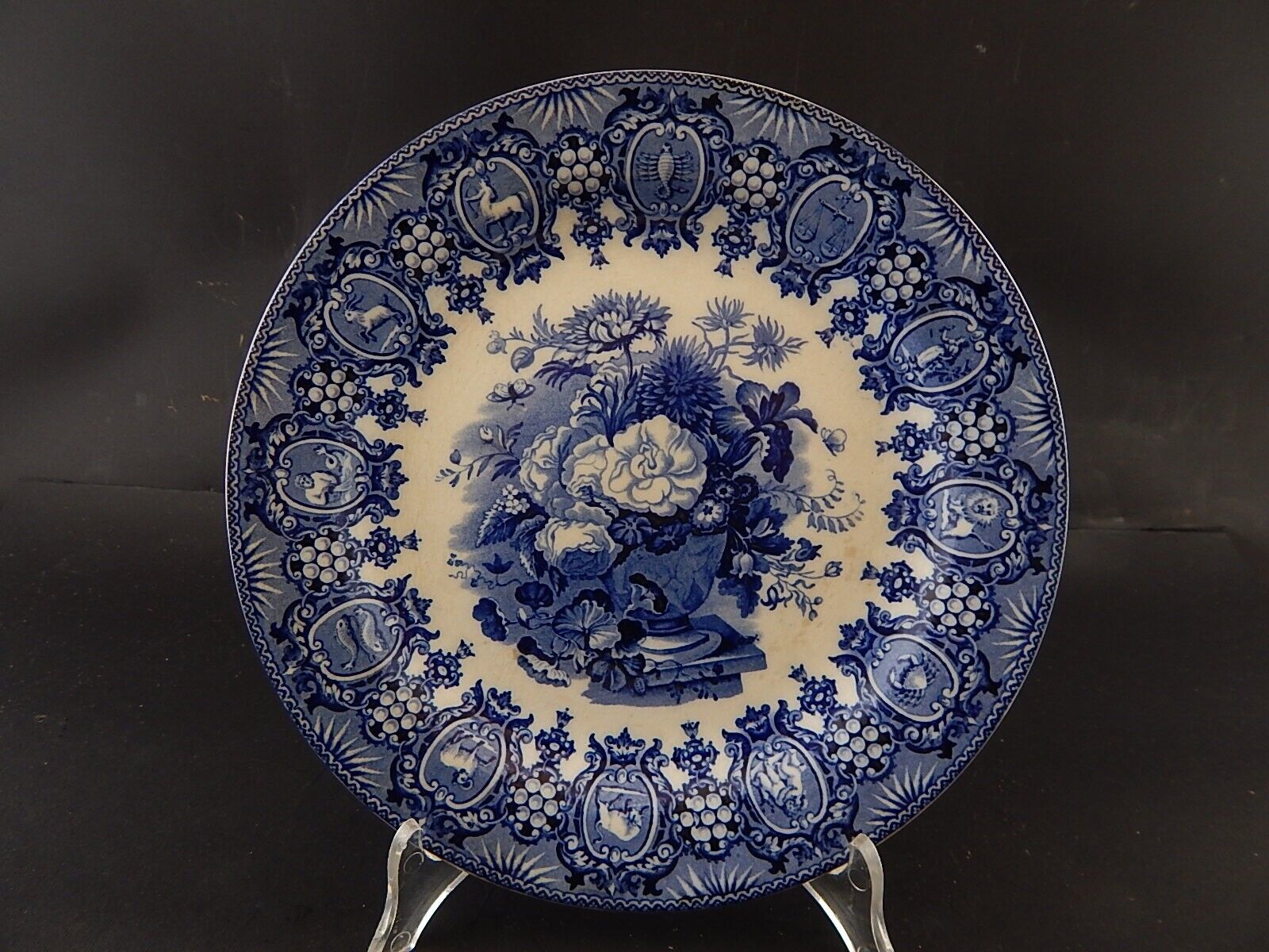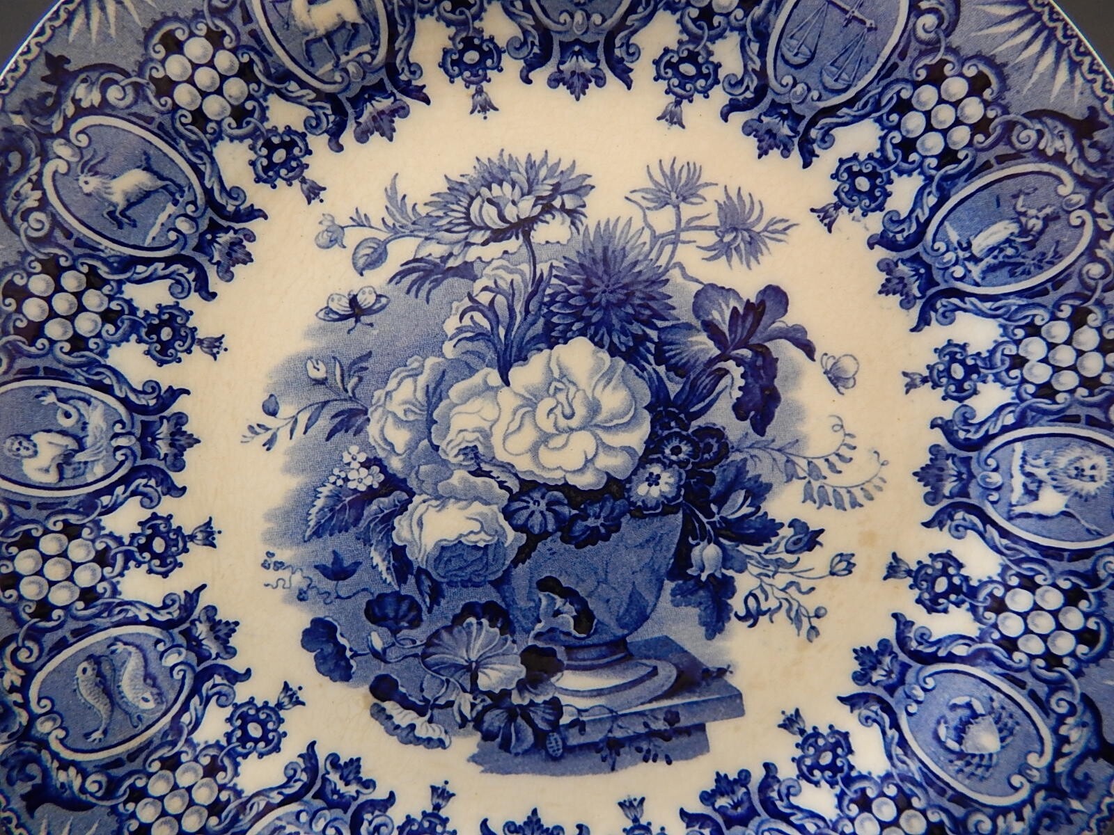 ANTICO RARO PIATTO PORCELLANA WEDGWOOD SEGNI ZODIACALI META' '800 BIANCO BLU