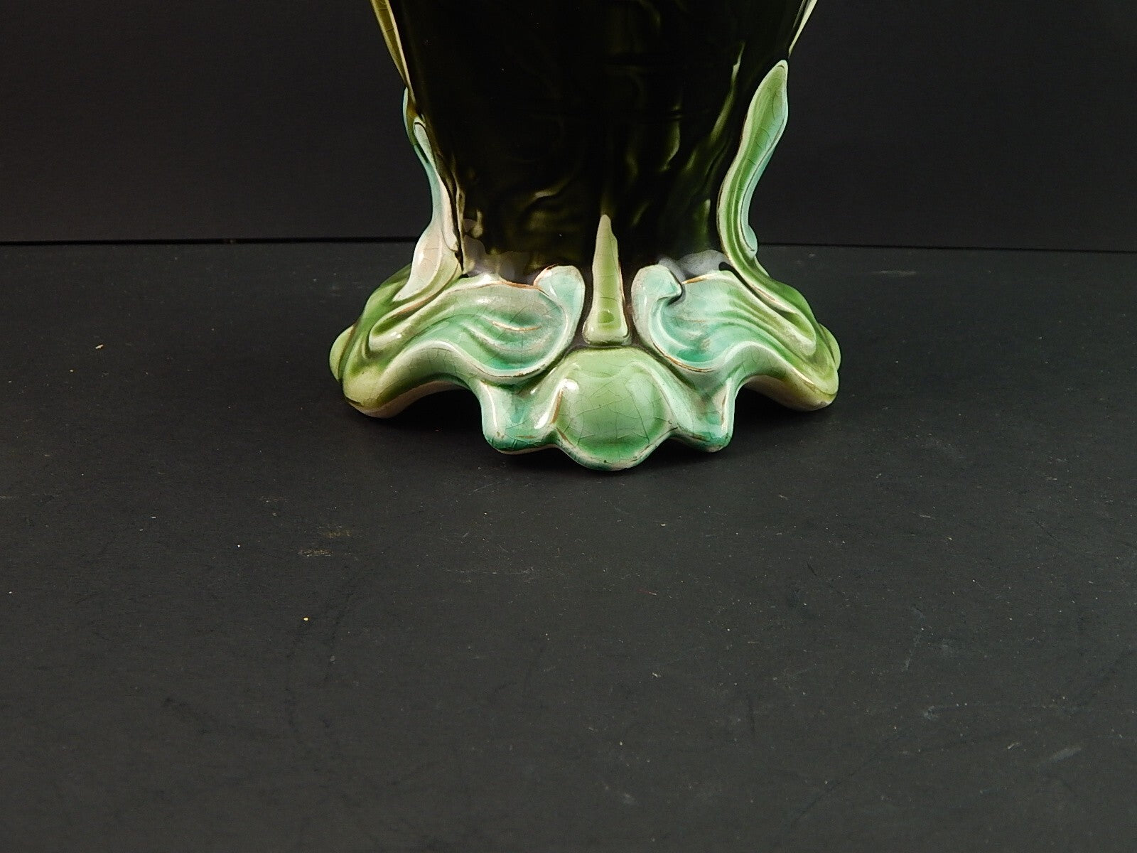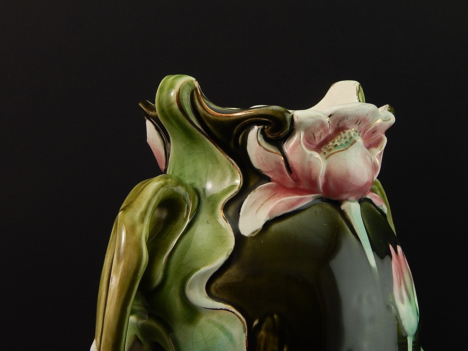 In questa inserzione viene presentato un grande vaso di maiolica realizzato dalla rinomata manifattura francese di Lille Gustave De Bruyn nei primi anni del 900 in perfetto stile Art Nouveau.