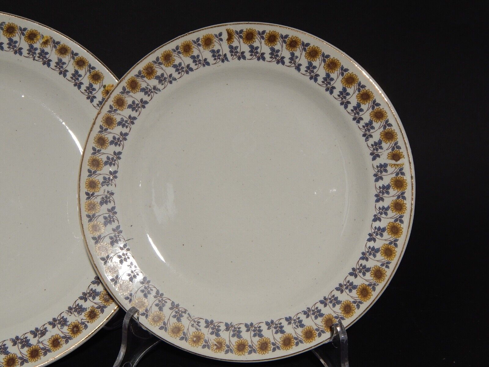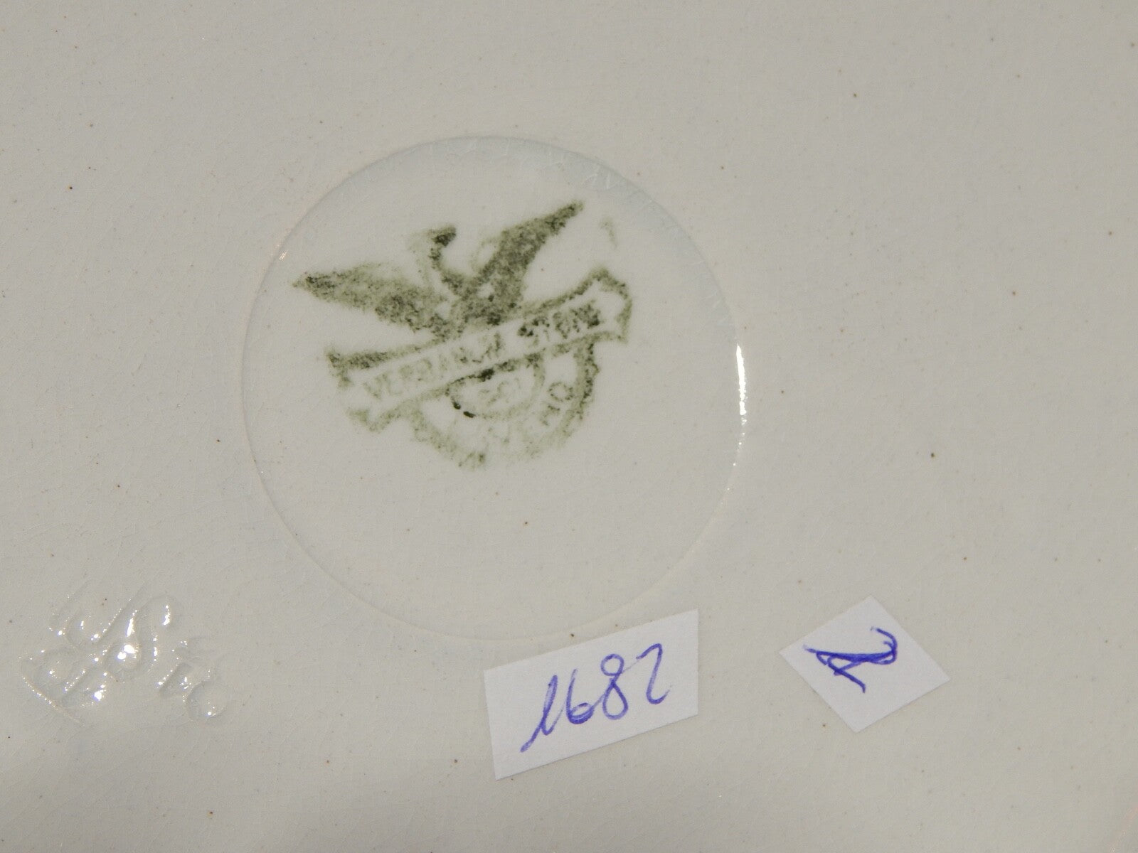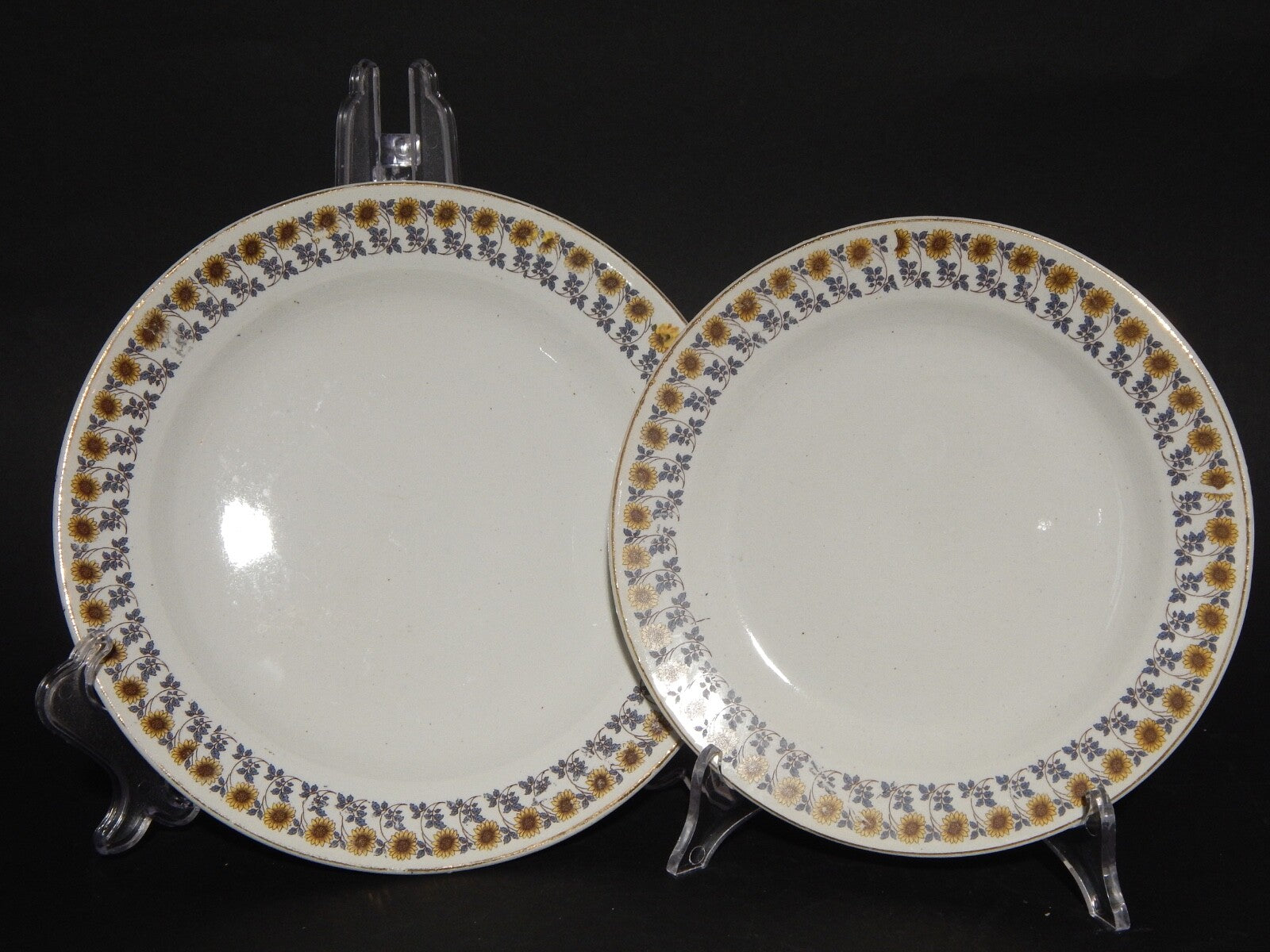 Il servizio è composto da 4 piatti piani che misurano 23 cm di diametro e 4 piatti da dessert che misurano 20 cm di diametro. Pur essendo privi di filature e scheggiature i piatti presentano un po' di cavillatura