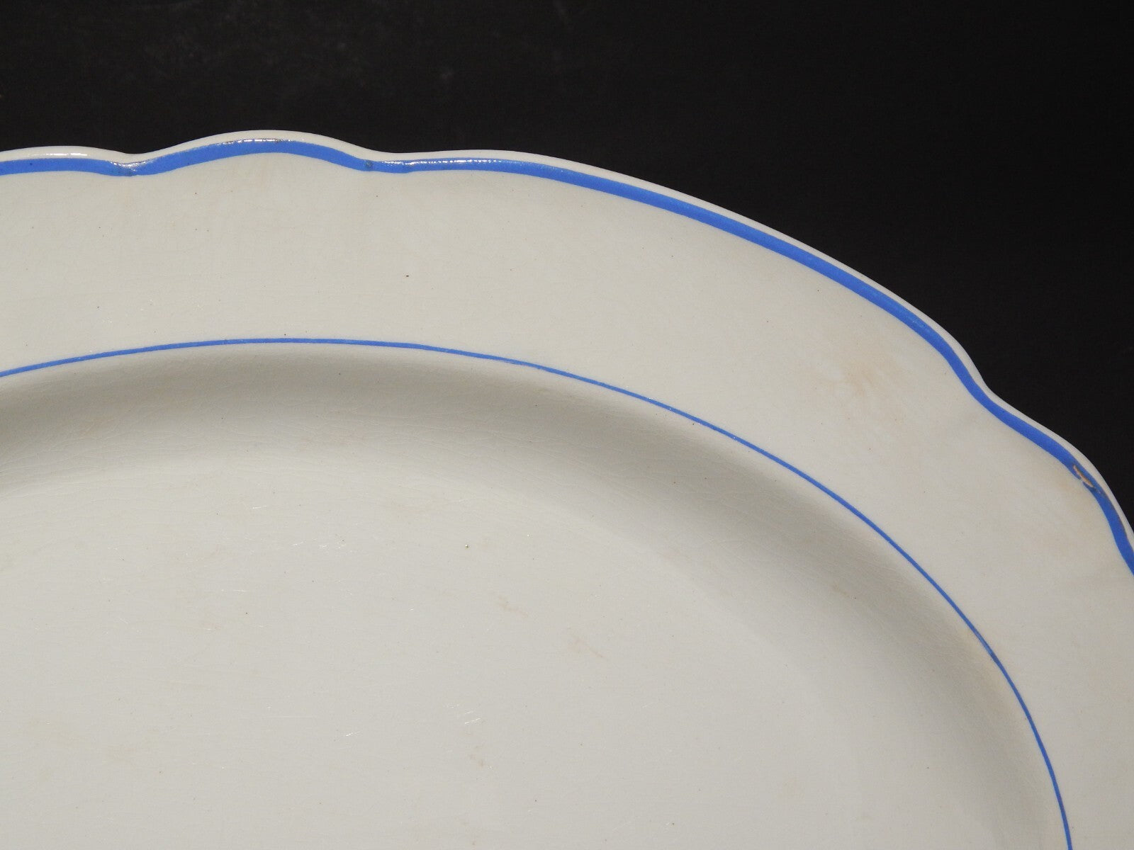 In questa inserzione viene presentato un antico vassoio in ceramica bianca con profilo blu cobalto realizzato alla fine del 1800 dalla manifattura Società Ceramiche Richard di Milano.