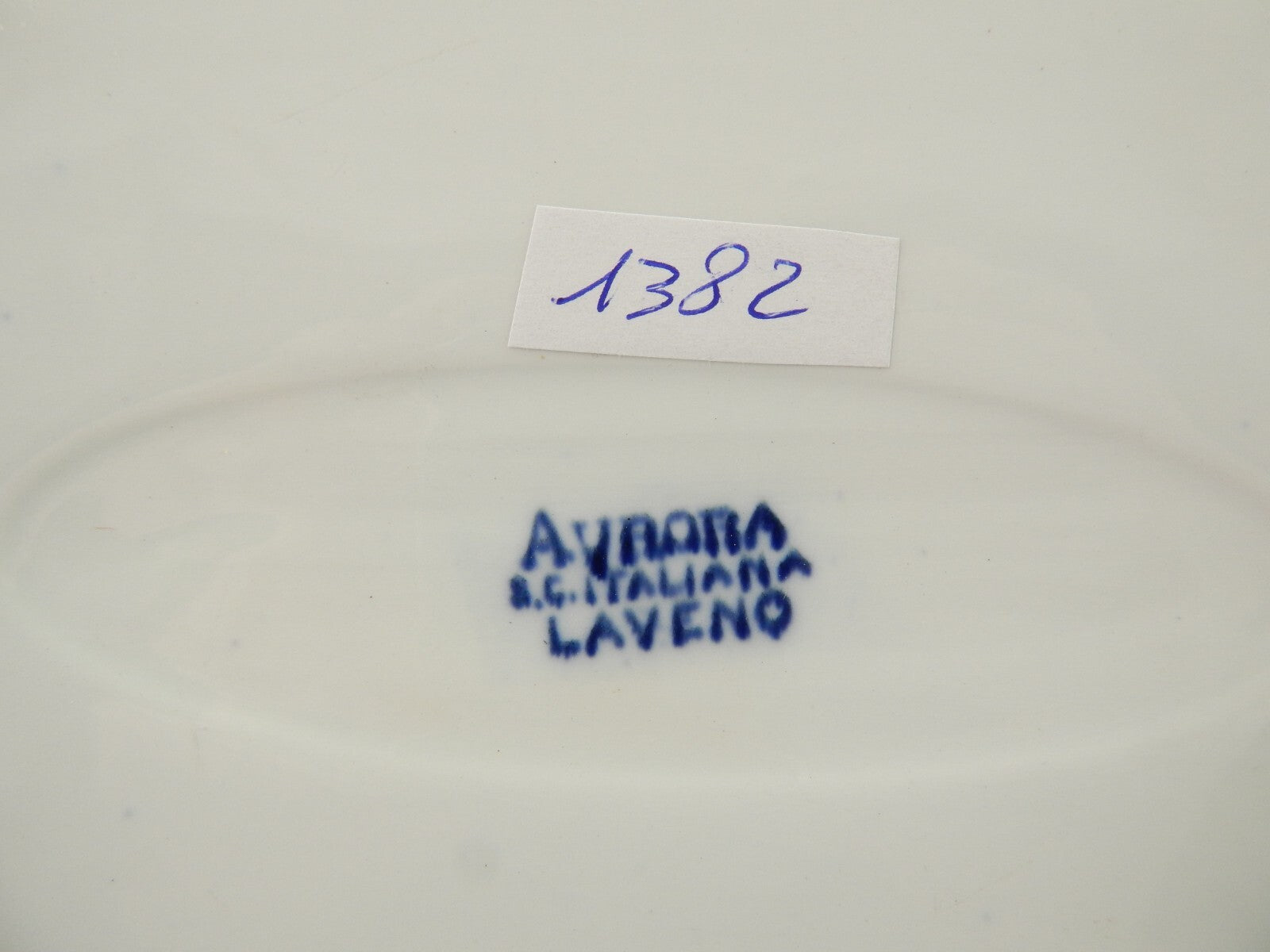 In questa inserzione viene presentato un vassoio in ceramica bianca con decoro in blu, denominato Aurora, realizzato nei primi anni del 1900 dalla manifattura Italiana di Laveno.
