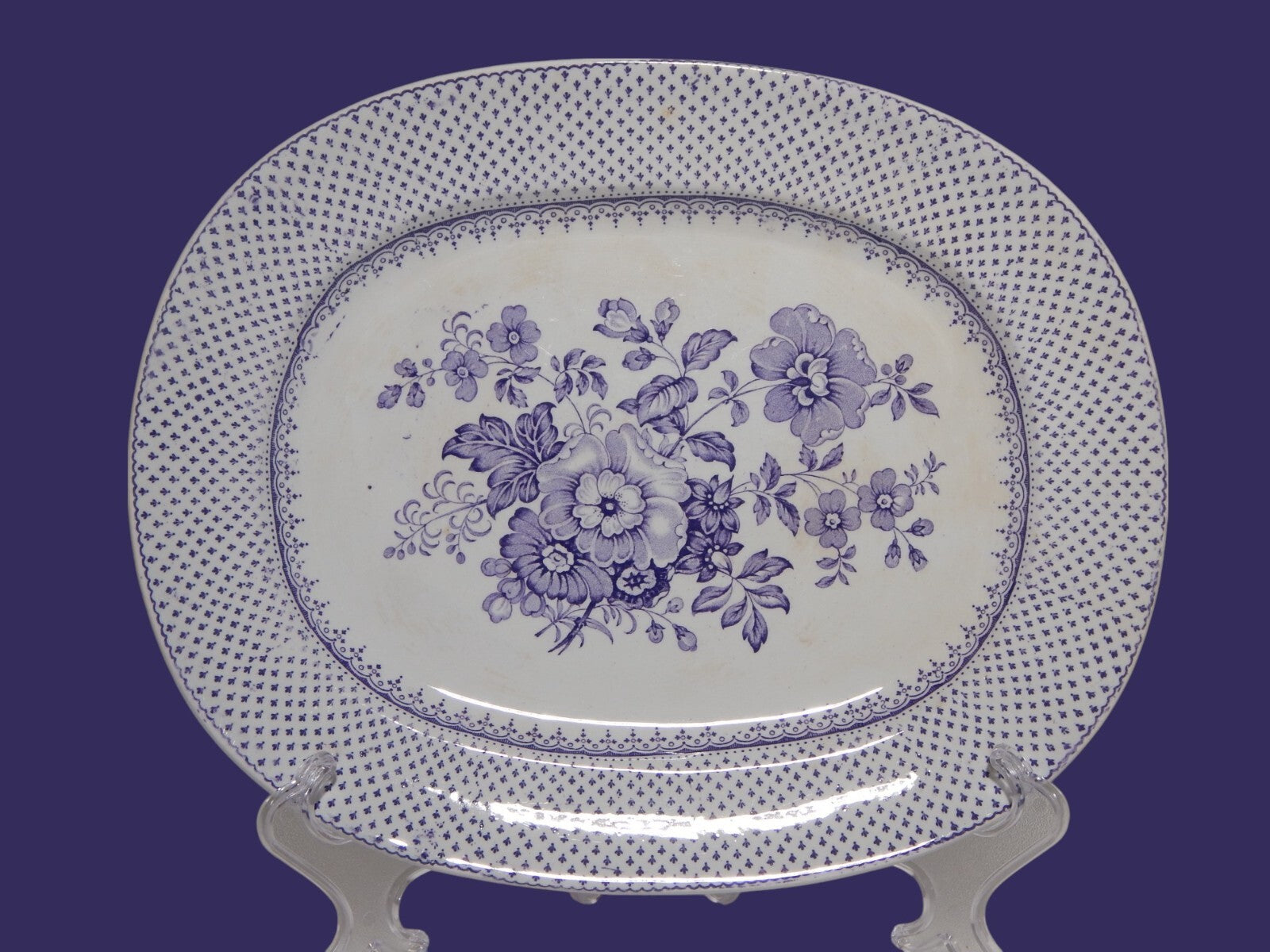 In questa inserzione viene presentato un antico e rarissimo vassoio di ceramica inglese realizzato da una manifattura dello Staffordshire ( attribuibile a Francis Morley & Co)