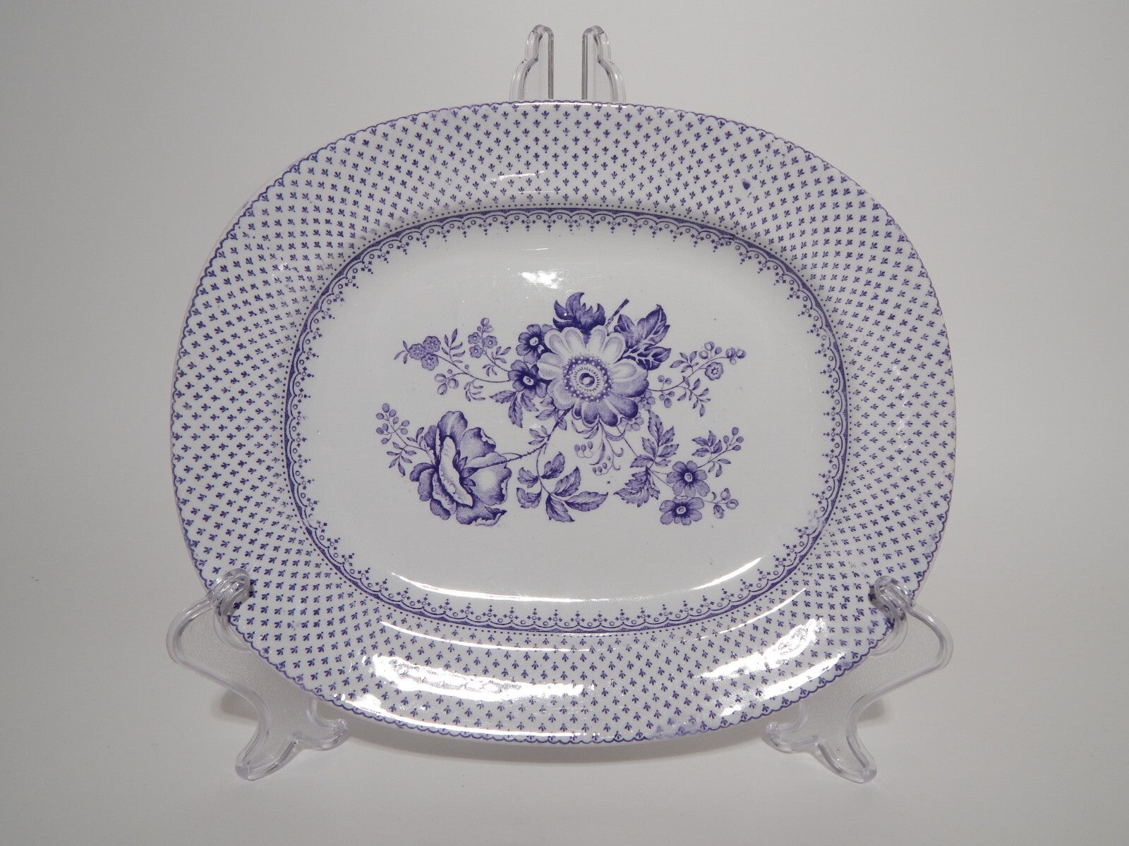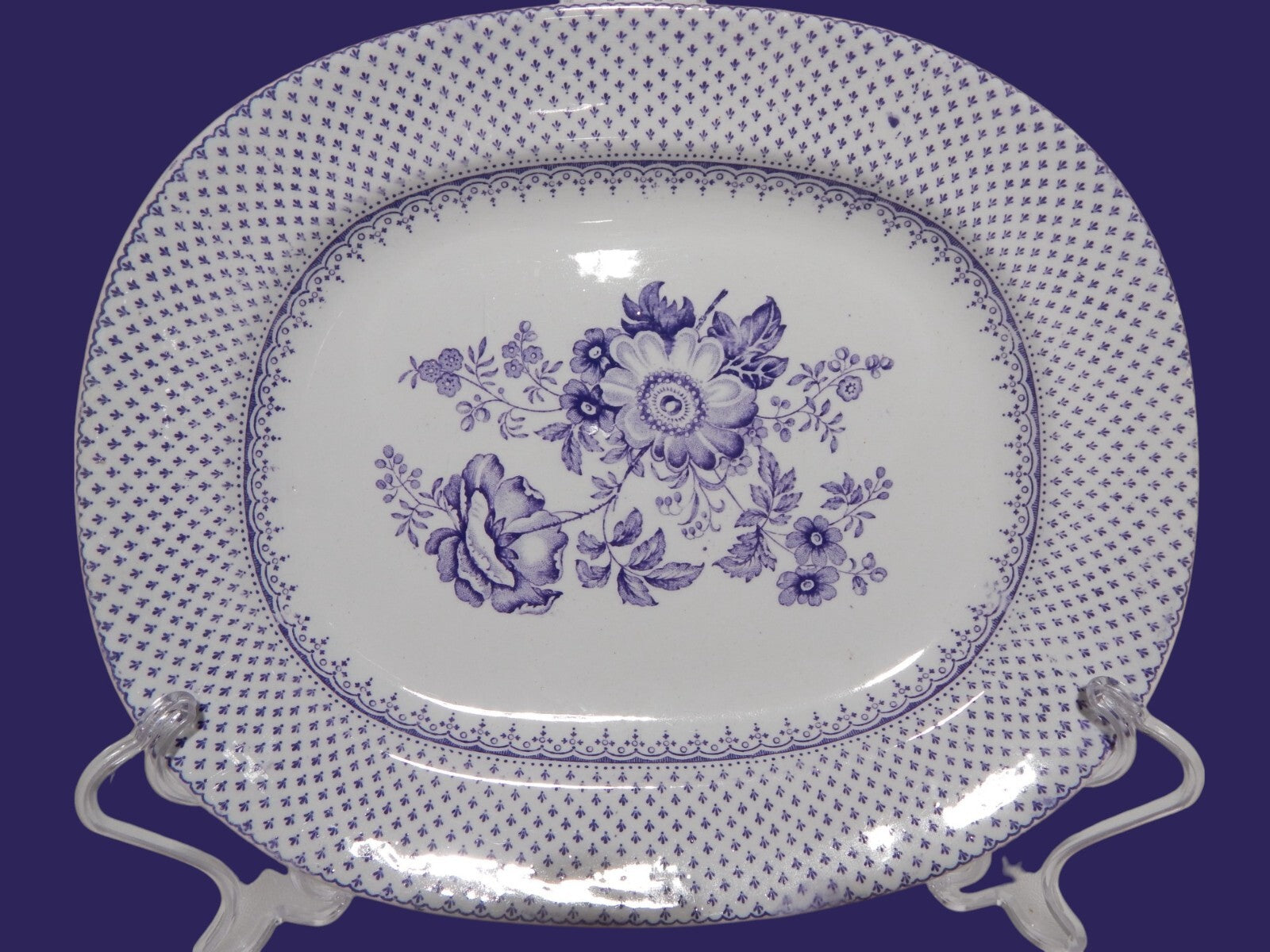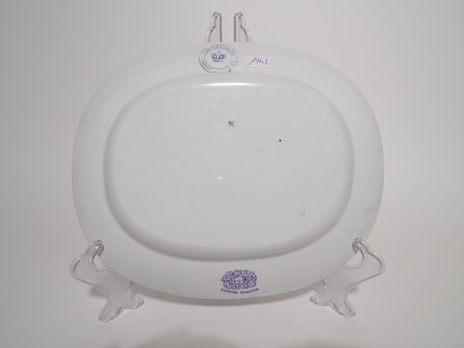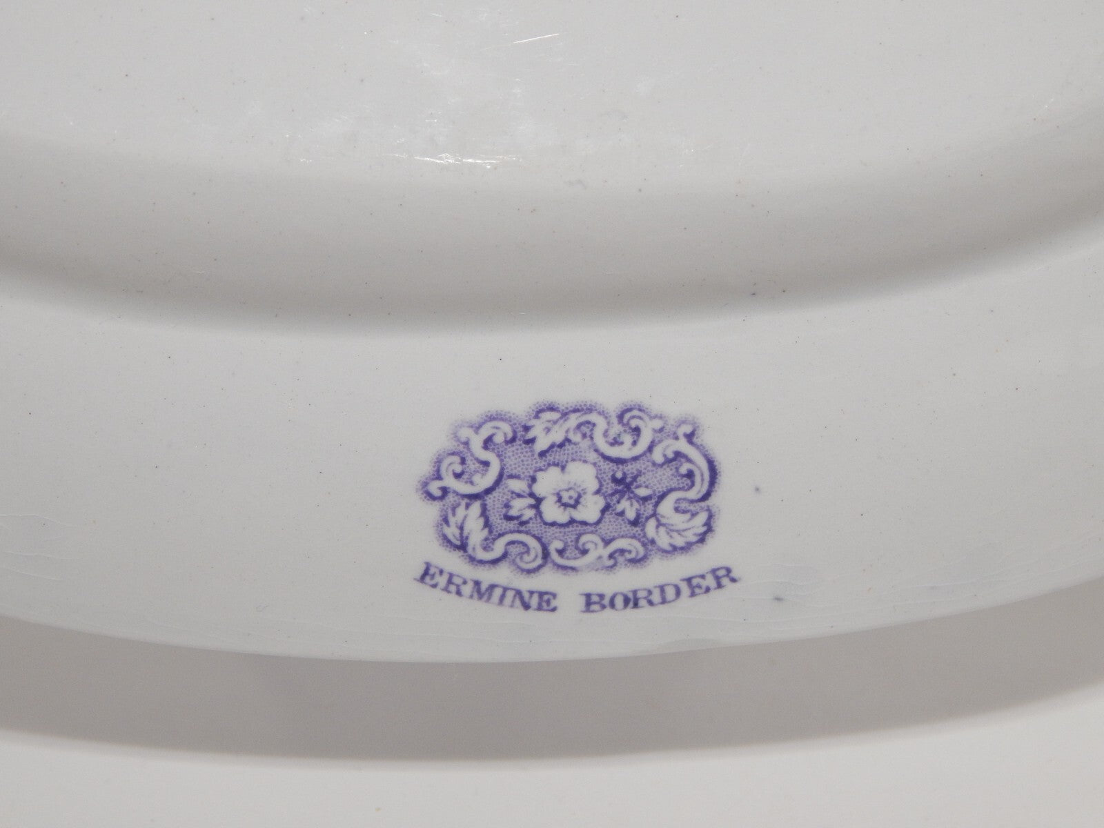 ANTICO RARO VASSOIO CERAMICA STAFFORDSHIRE PRIMAVESI 1860 ERMINE BORDER VIOLA