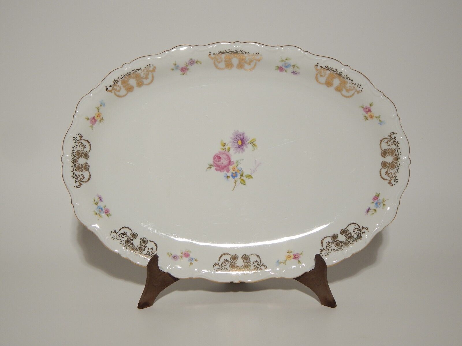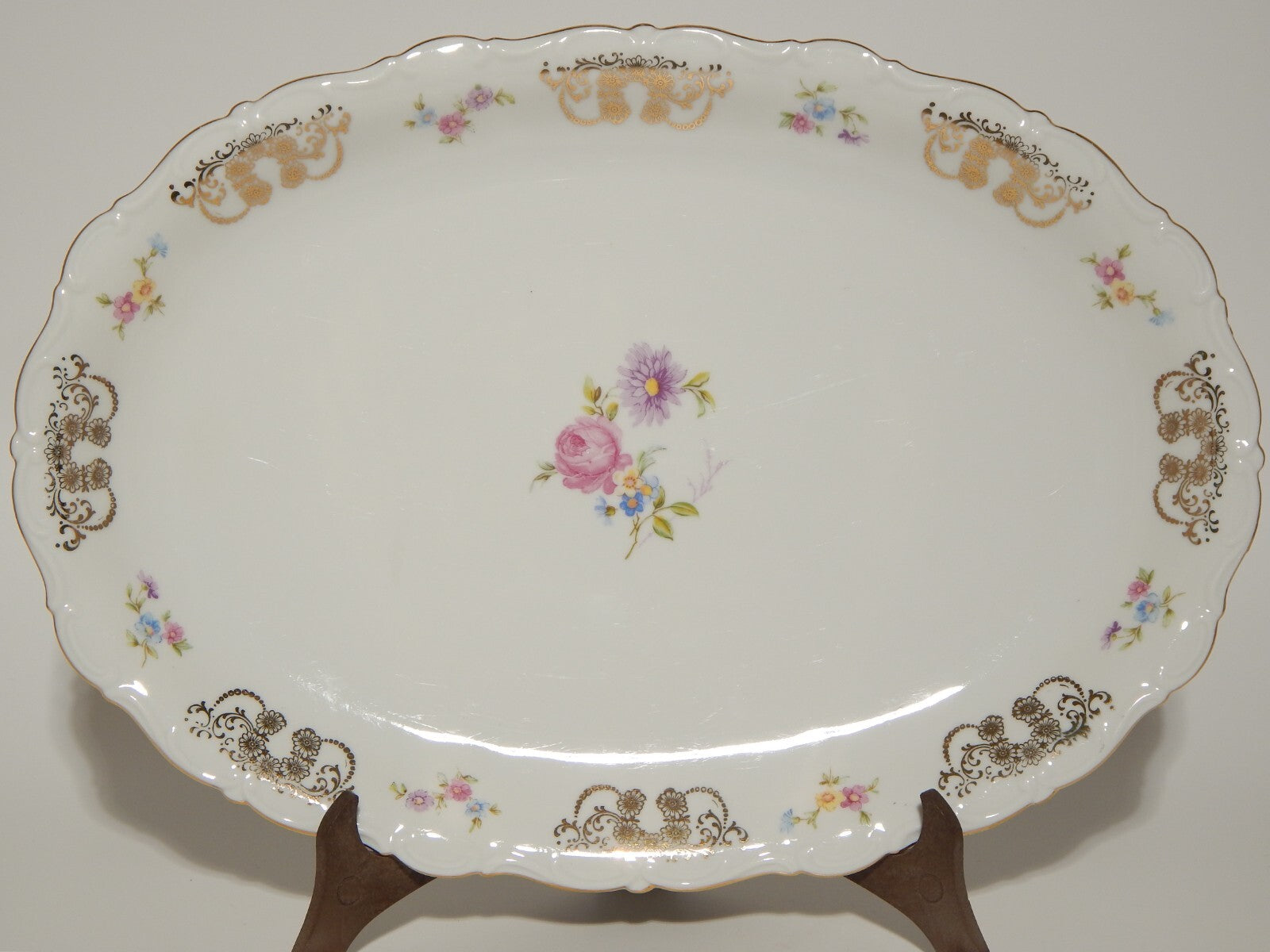 ANTICO RARO VASSOIO OVALE PORCELLANA SELTMANN WEIDEN THERESIA LA ROSA E LA DALIA