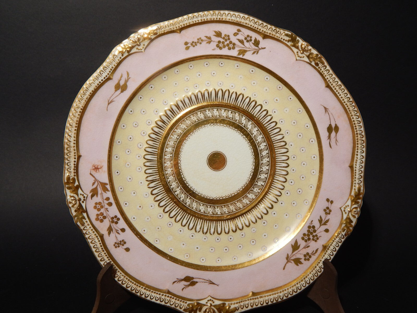 ANTICO REGENCY RARO PREZIOSO PIATTO PORCELLANA INGLESE DECORO ROSA E ORO