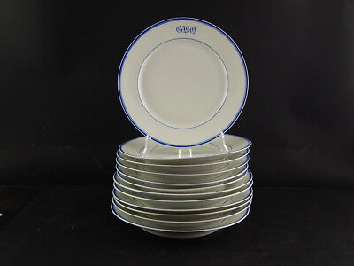 ANTICO SERVIZIO 12 PIATTI PORCELLANA DI PARIGI PROFILI BLU FINE 800 MONOGRAMMA