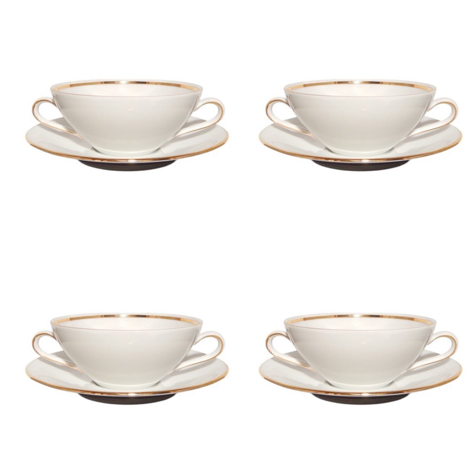 ANTICO SERVIZIO 4 TAZZE BRODO STILE IMPERO PORCELLANA E ORO BAVARIA SELTMANN W.