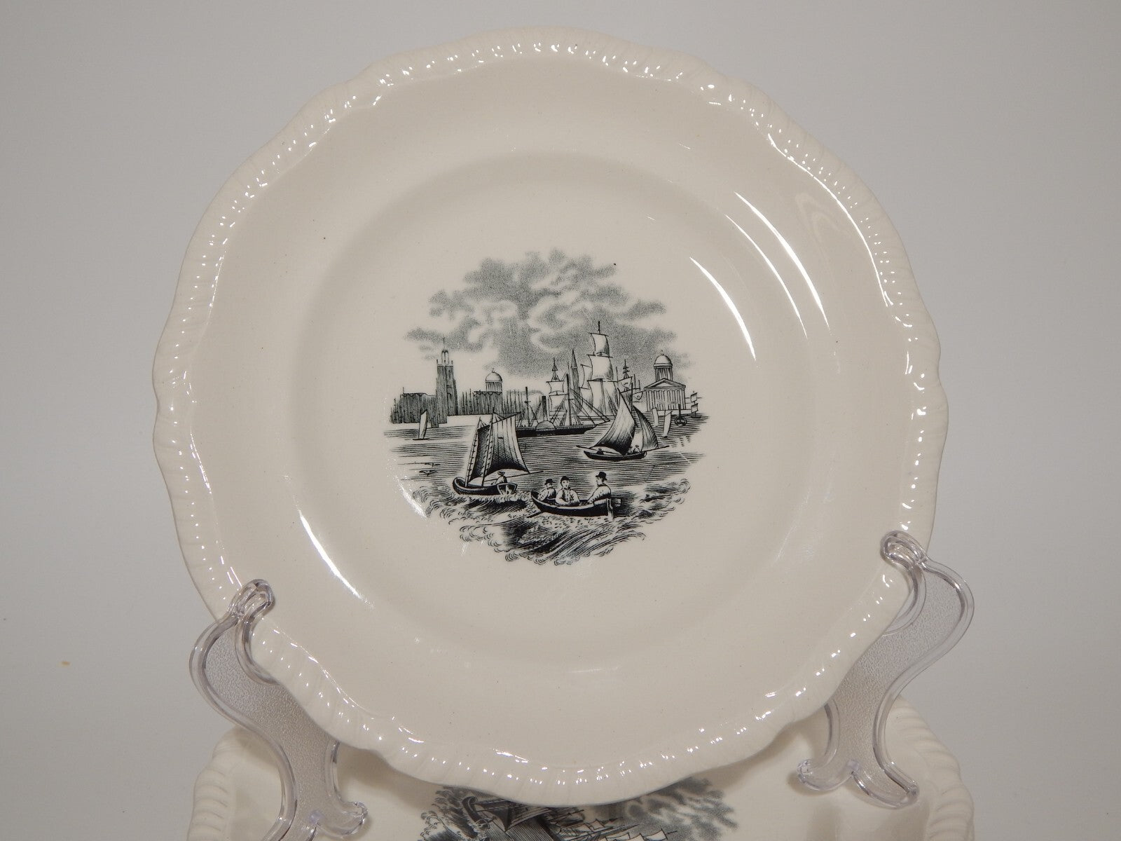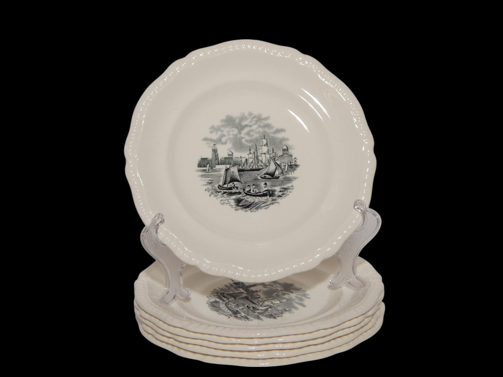 ANTICO SERVIZIO 6 PIATTI DESSERT SEMI-PORCELLANA COPELAND SPODE PAESAGGIO MARINO