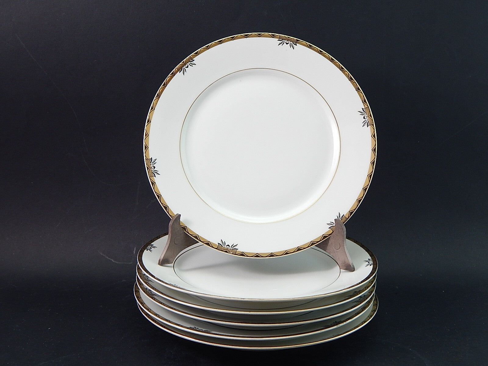 ANTICO SERVIZIO 6 PIATTI IMPERO PORCELLANA DECORO NERO ORO BAVARIA O. SCHALLER