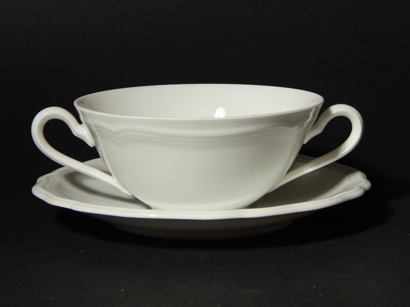 In questa inserzione viene presentato un antico servizio da brodo realizzato nel 1930 dalla manifattura tedesca Bavaria Seltmann Weiden nella famosa forma Marie Luise. Il servizio in porcellana bianca è composto da 6 tazze con doppio manico e con relativo piattino