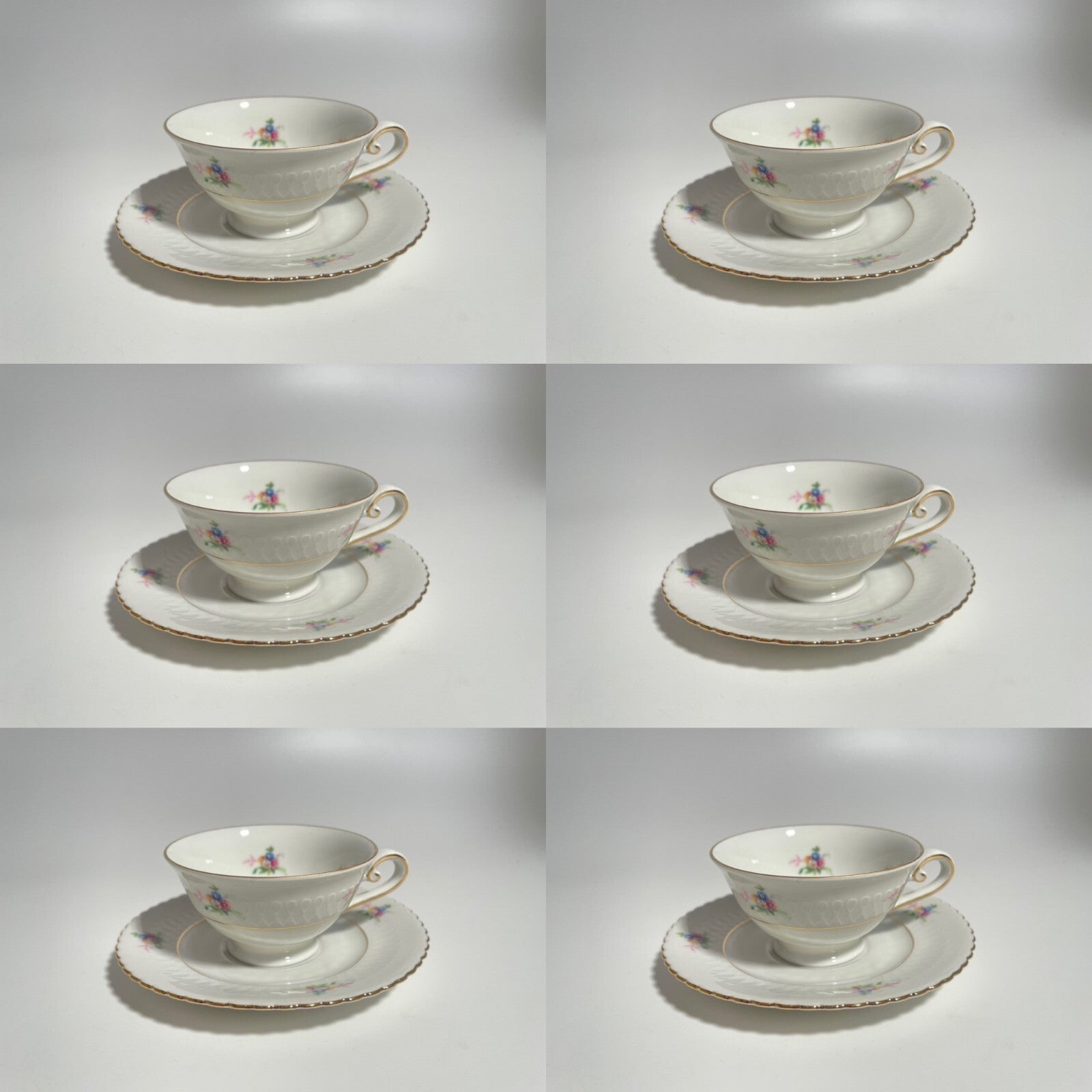 In questa inserzione viene presentato un set composto da 6 tazzine con relativi piattini di porcellana bianca di altissima qualità, decorato con fiorellini policromi e profili in oro zecchino, realizzato dalla manifattura Seltmann Weiden Bavaria nel modello Elisabeth