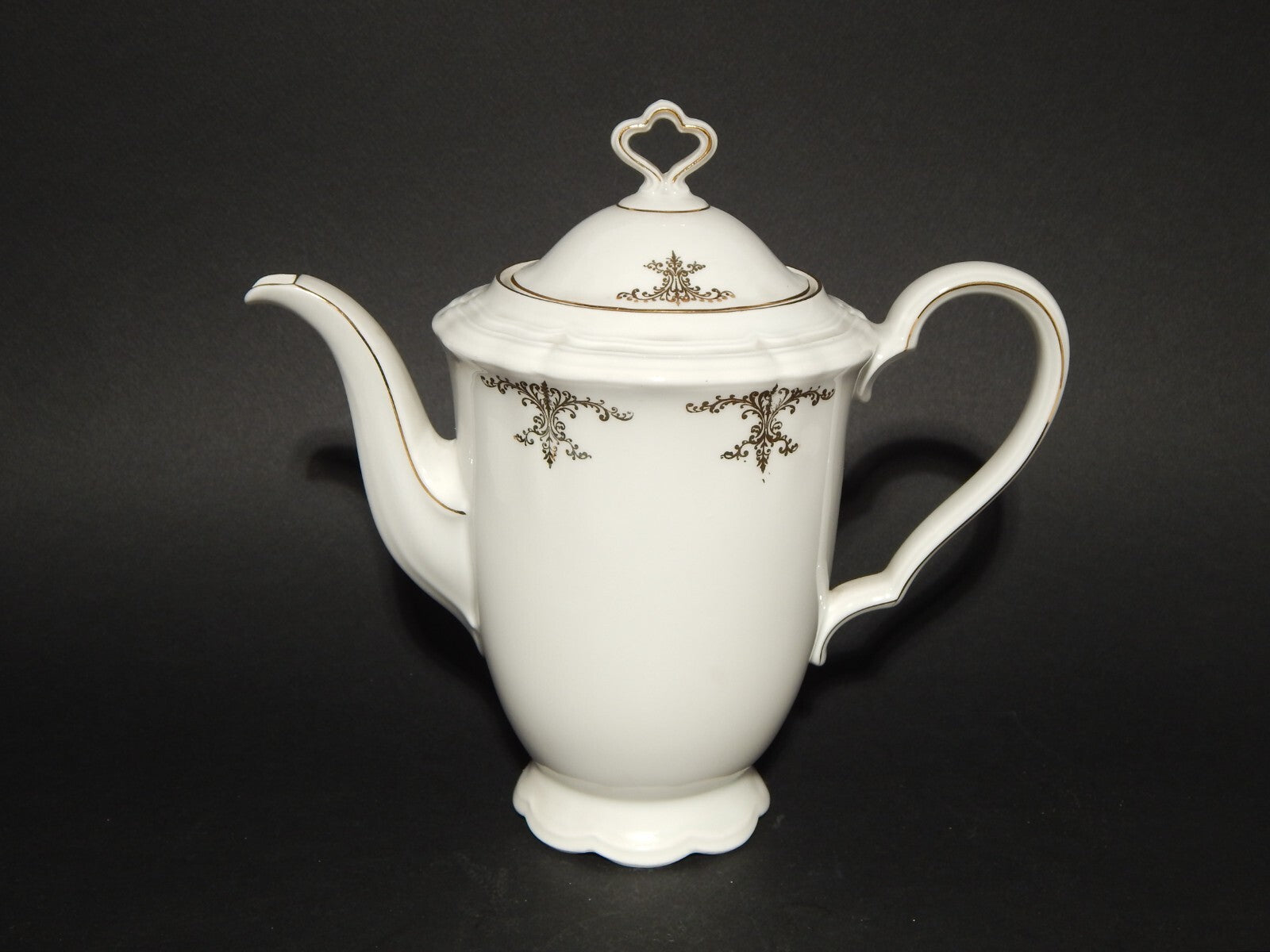 In questa inserzione viene presentato un antico servizio da caffè realizzato nel 1930 dalla manifattura tedesca Bavaria Seltmann Weiden nella famosa forma Marie Luise. Il servizio in porcellana bianca è decorato con arabeschi in oro zecchino ed è composto da 6 tazze con piattino, una lattiera, una zuccheriera e una caffettiera.