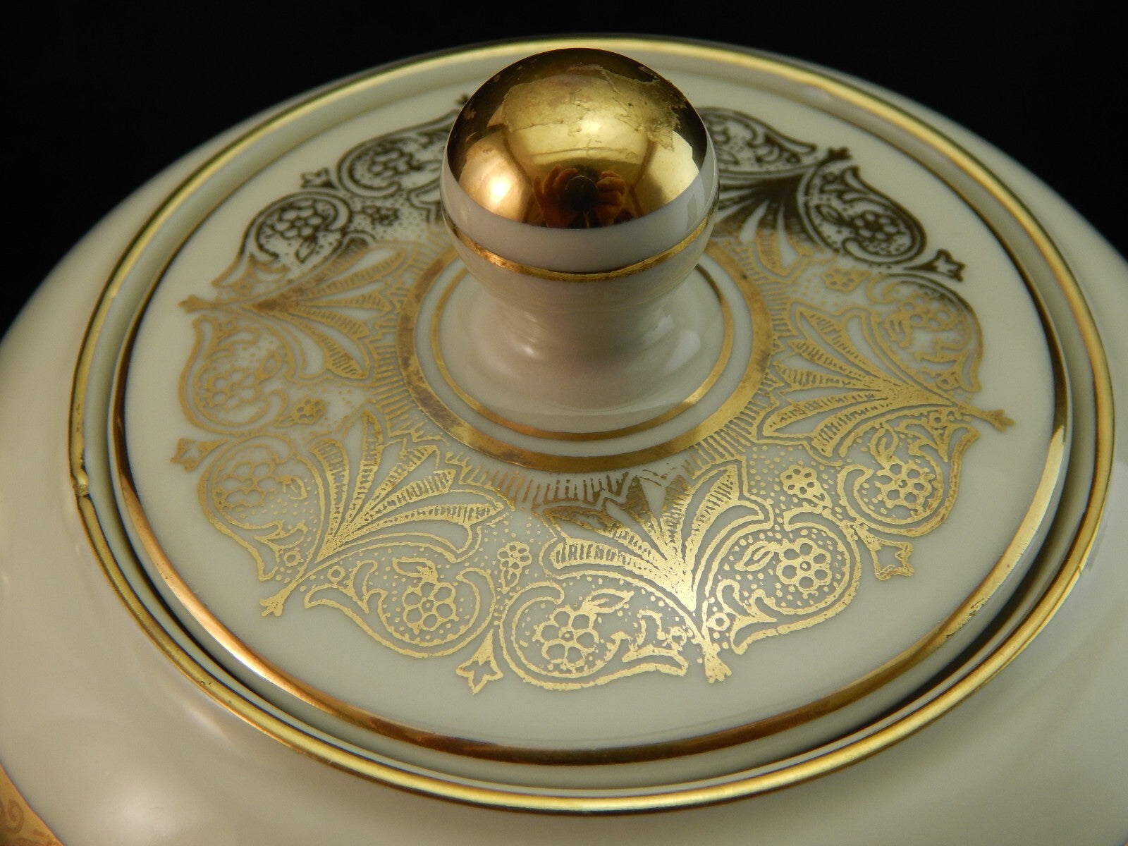 In questa inserzione viene presentato un servizio da caffè in finissima porcellana della manifattura Johann Seltmann Vohenstrauss realizzato nella prima metà del 1900. Il servizio di colore avorio è decorato in oro zecchino e blu cobalto