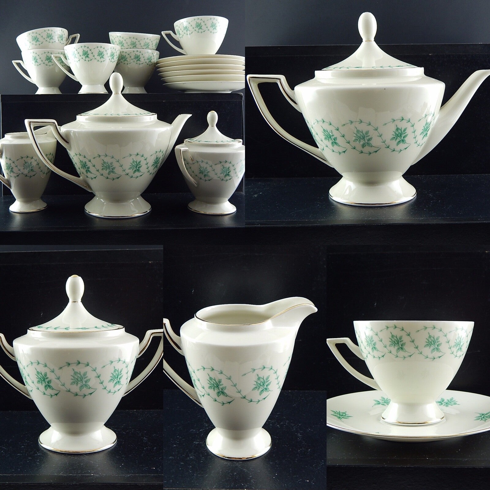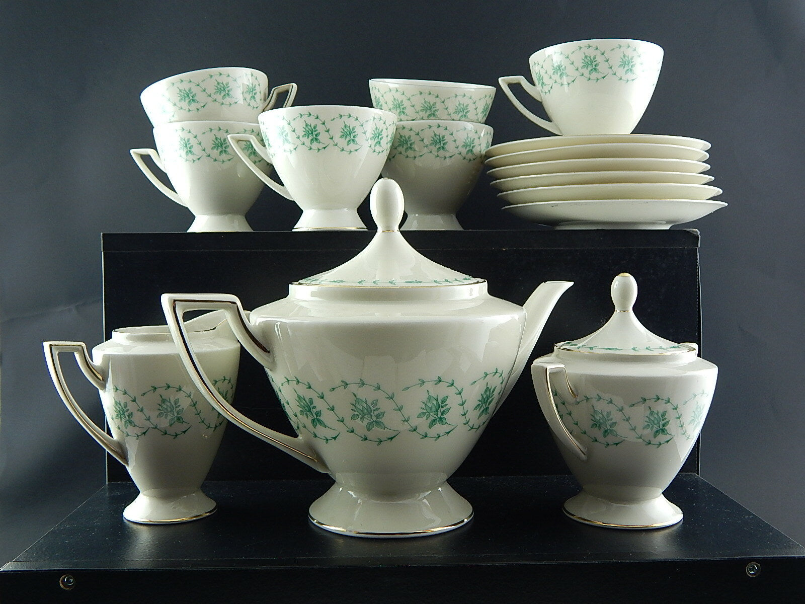 ANTICO SERVIZIO DA TÈ IMPERO PORCELLANA AVORIO E VERDE JAEGER&CO BAVARIA