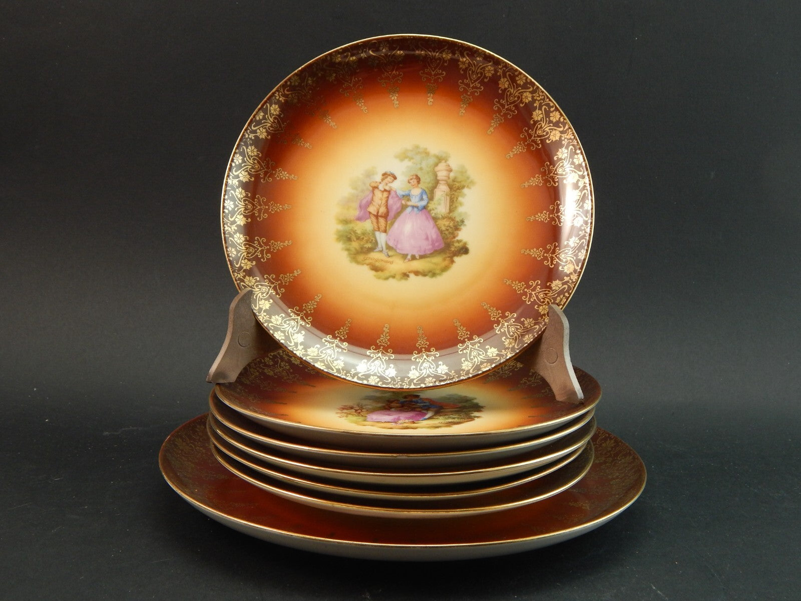 ANTICO SERVIZIO DESSERT PORCELLANA HUTSCHENREUTHER BAVARIA SCENE GALANTI