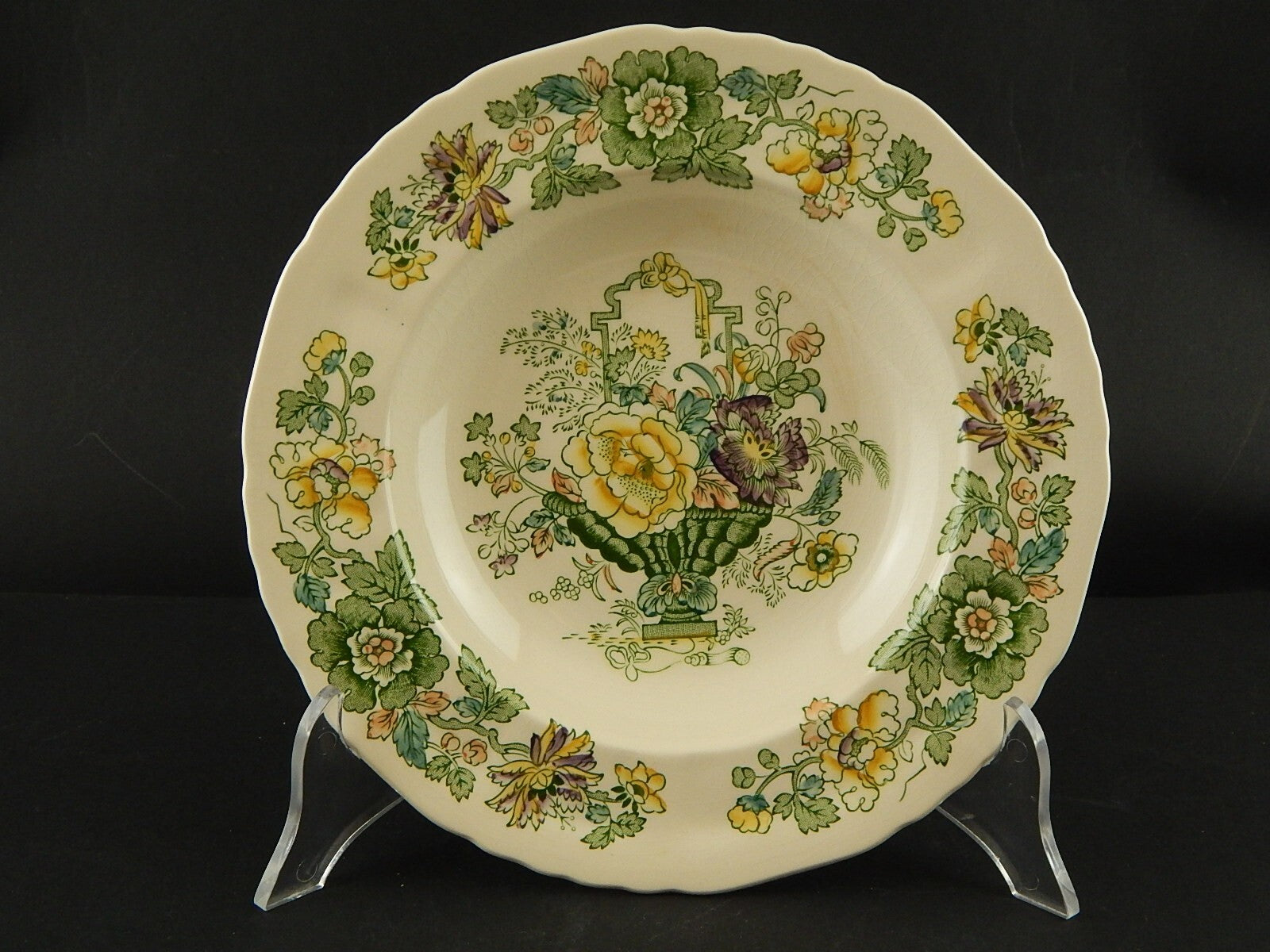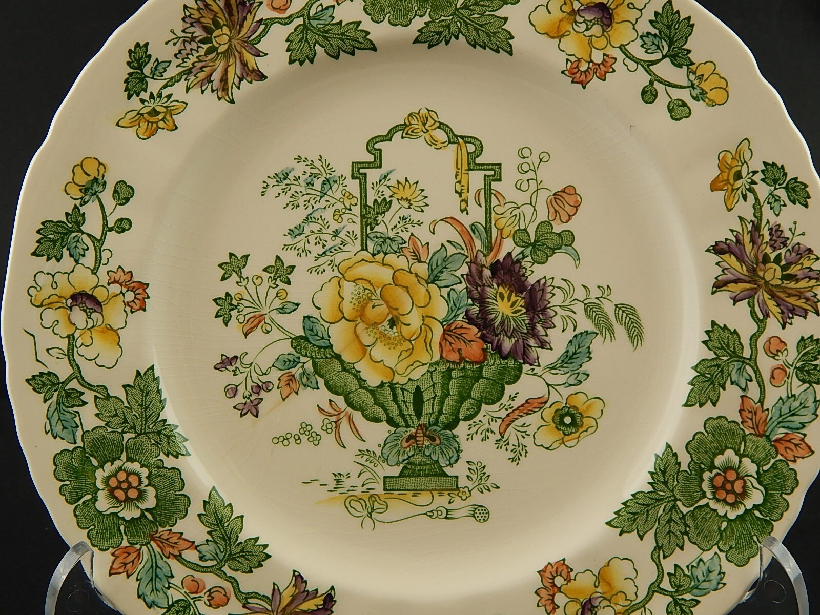 In questa inserzione viene presentato un servizio da tavola composto da 12 piatti in ceramica o semi porcellana realizzato dalla rinomata manifattura inglese Mason’s nel famoso decoro Strathmore