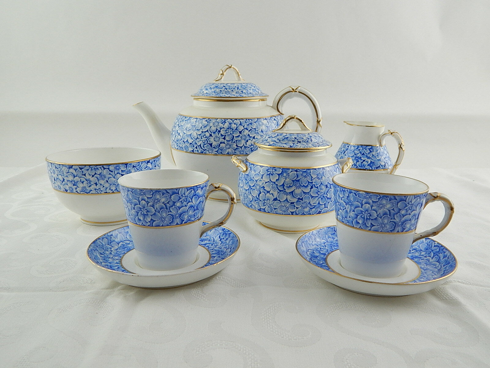 In questa inserzione viene presentato un antico servizio da tè in porcellana realizzato dalla rinomata manifattura inglese Royal Worcester nel 1879