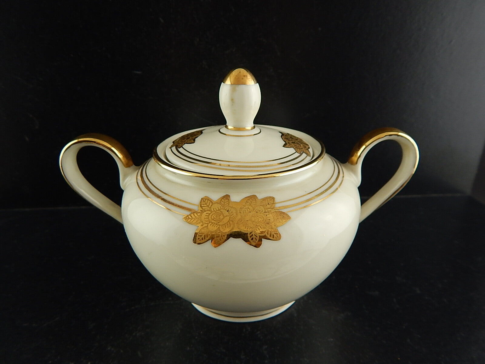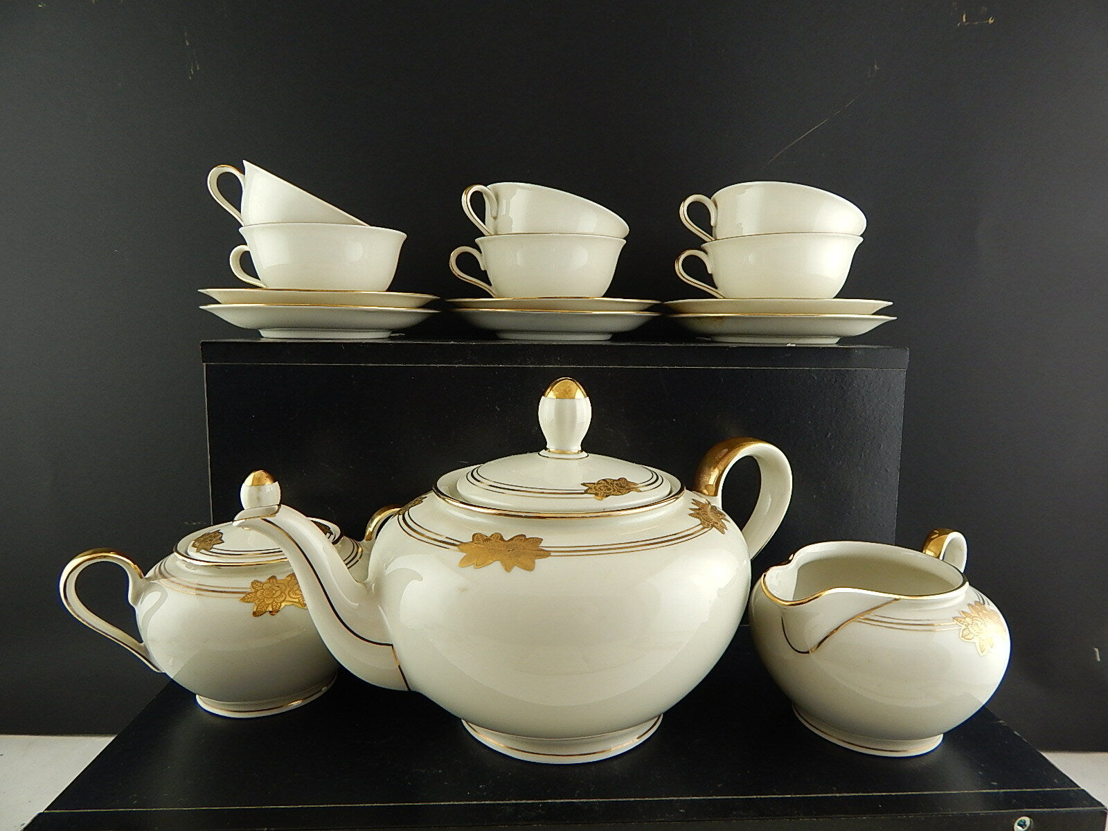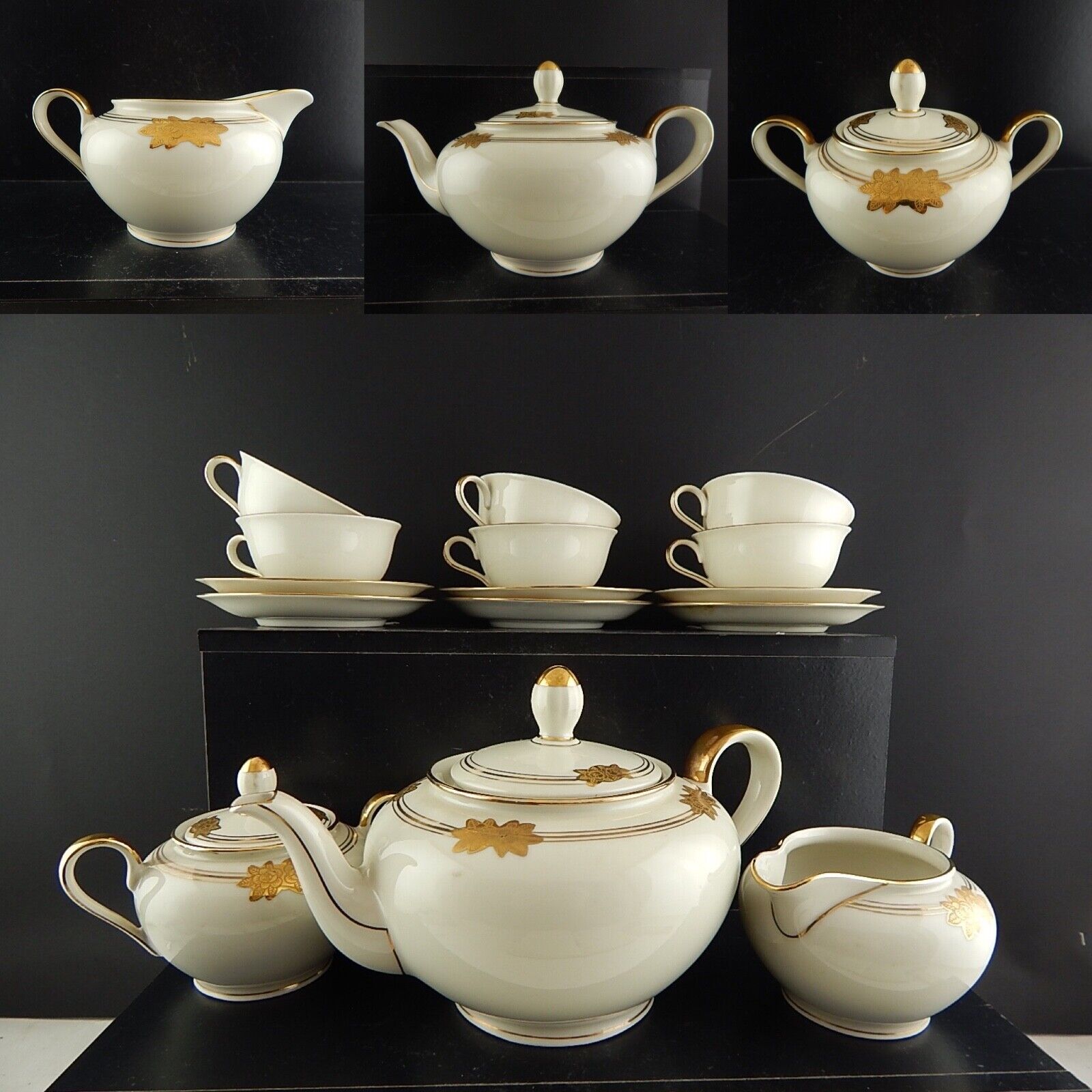 ANTICO SERVIZIO TÈ ART DECO PORCELLANA AVORIO ROSE ORO BAVARIA OSCAR SCHALLER