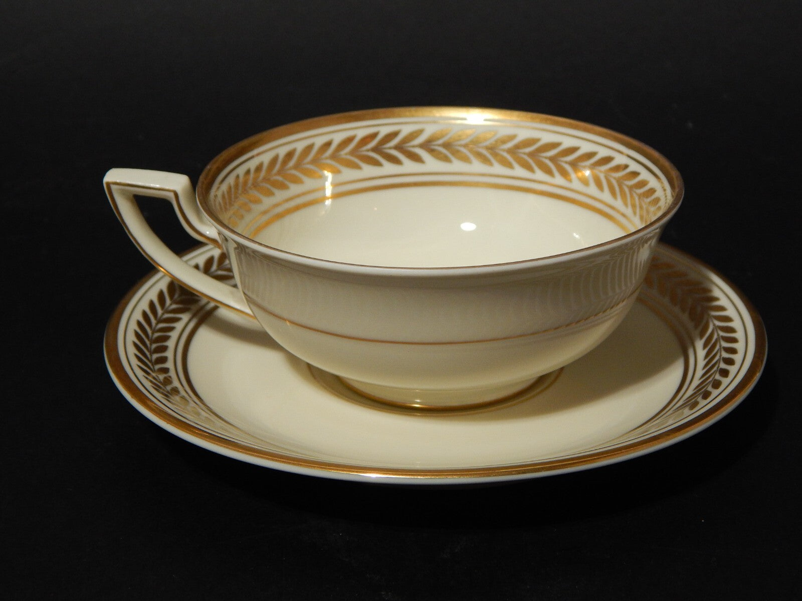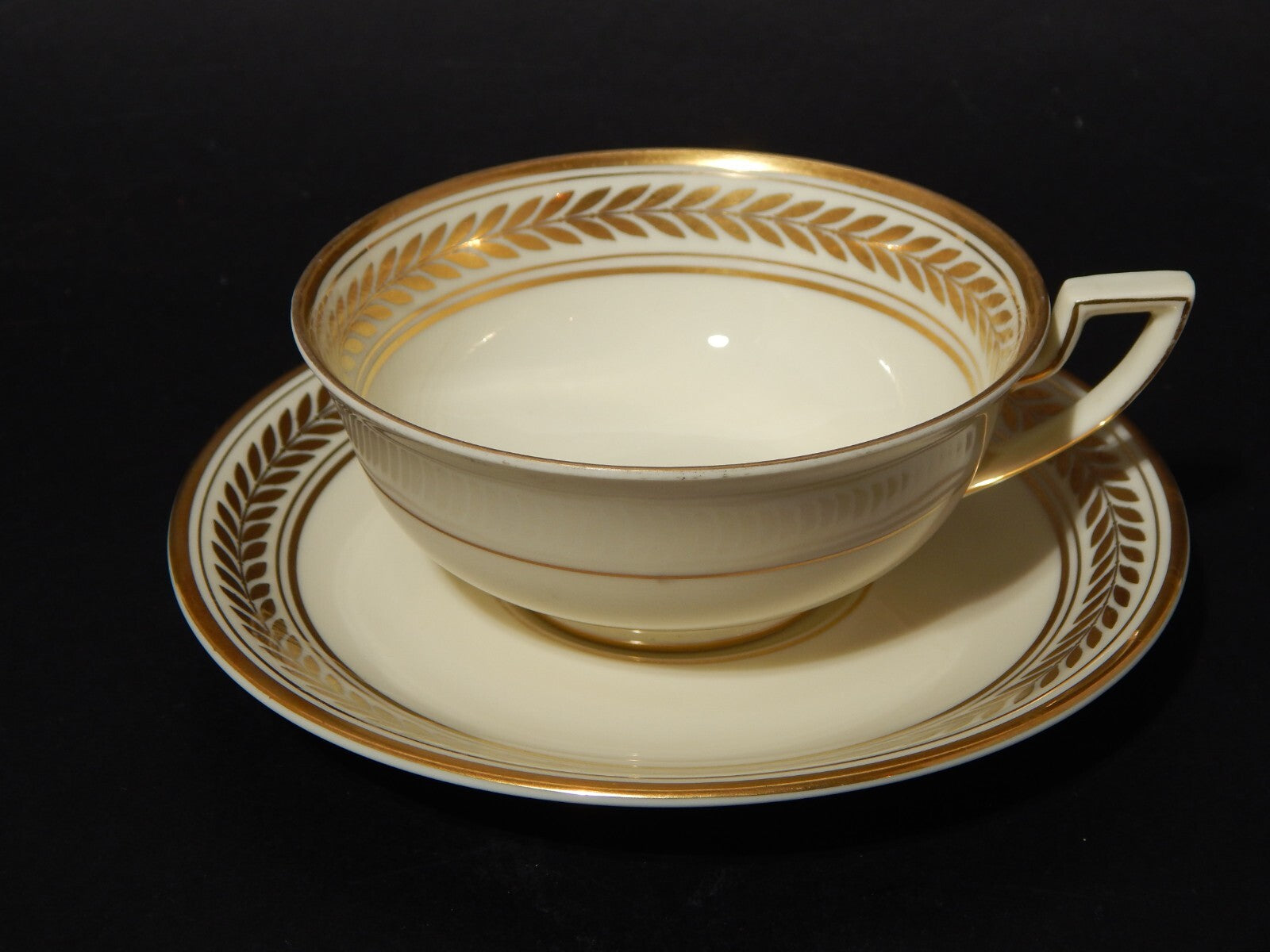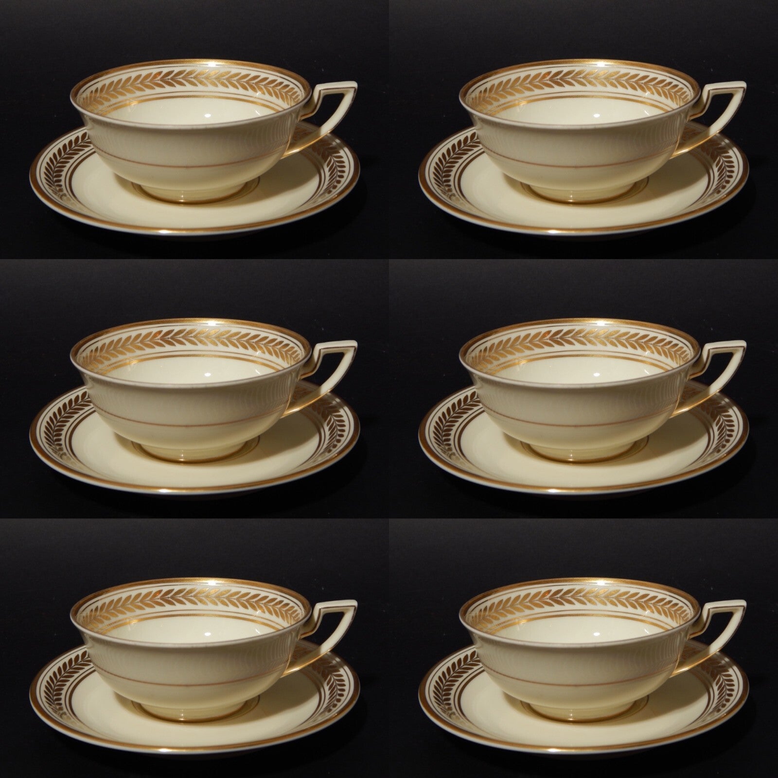Il servizio è stato realizzato in porcellana color avorio e rifinito in oro zecchino con disegno in stile impero
