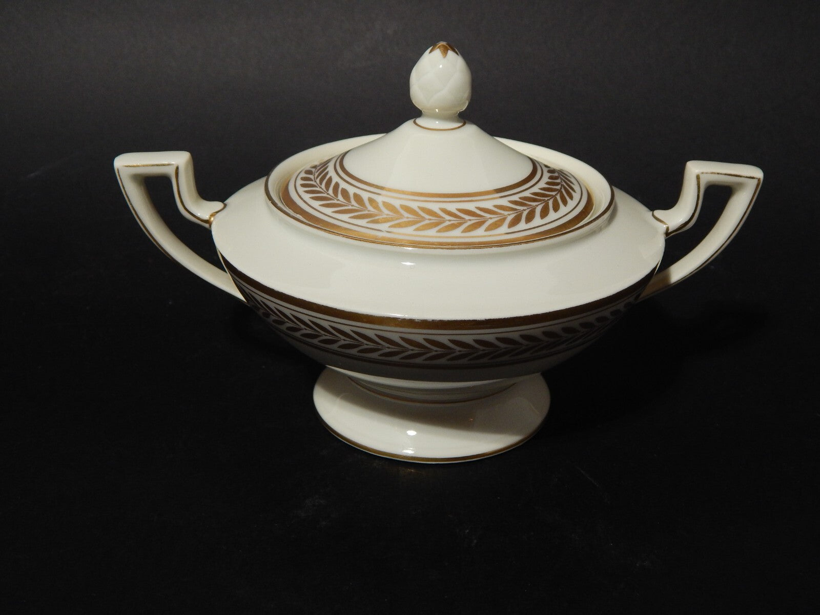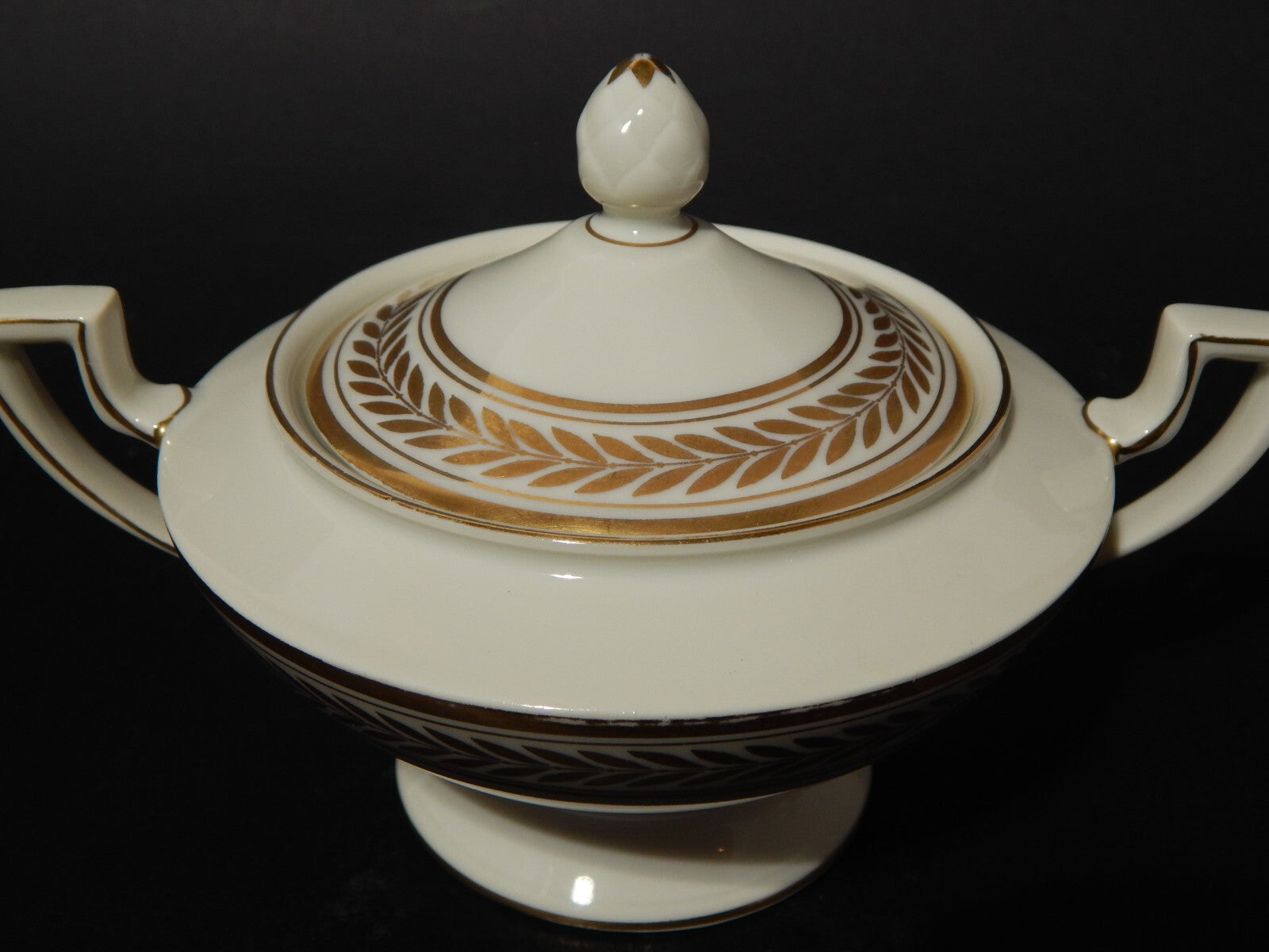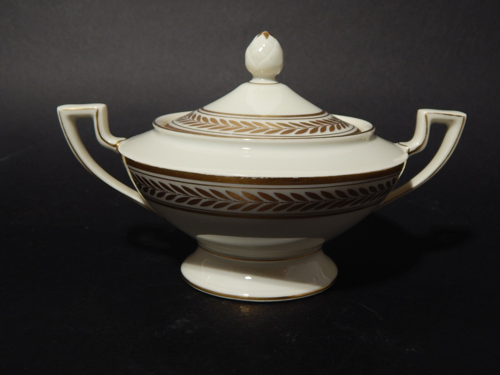 Il servizio è stato realizzato in porcellana color avorio e rifinito in oro zecchino con disegno in stile impero