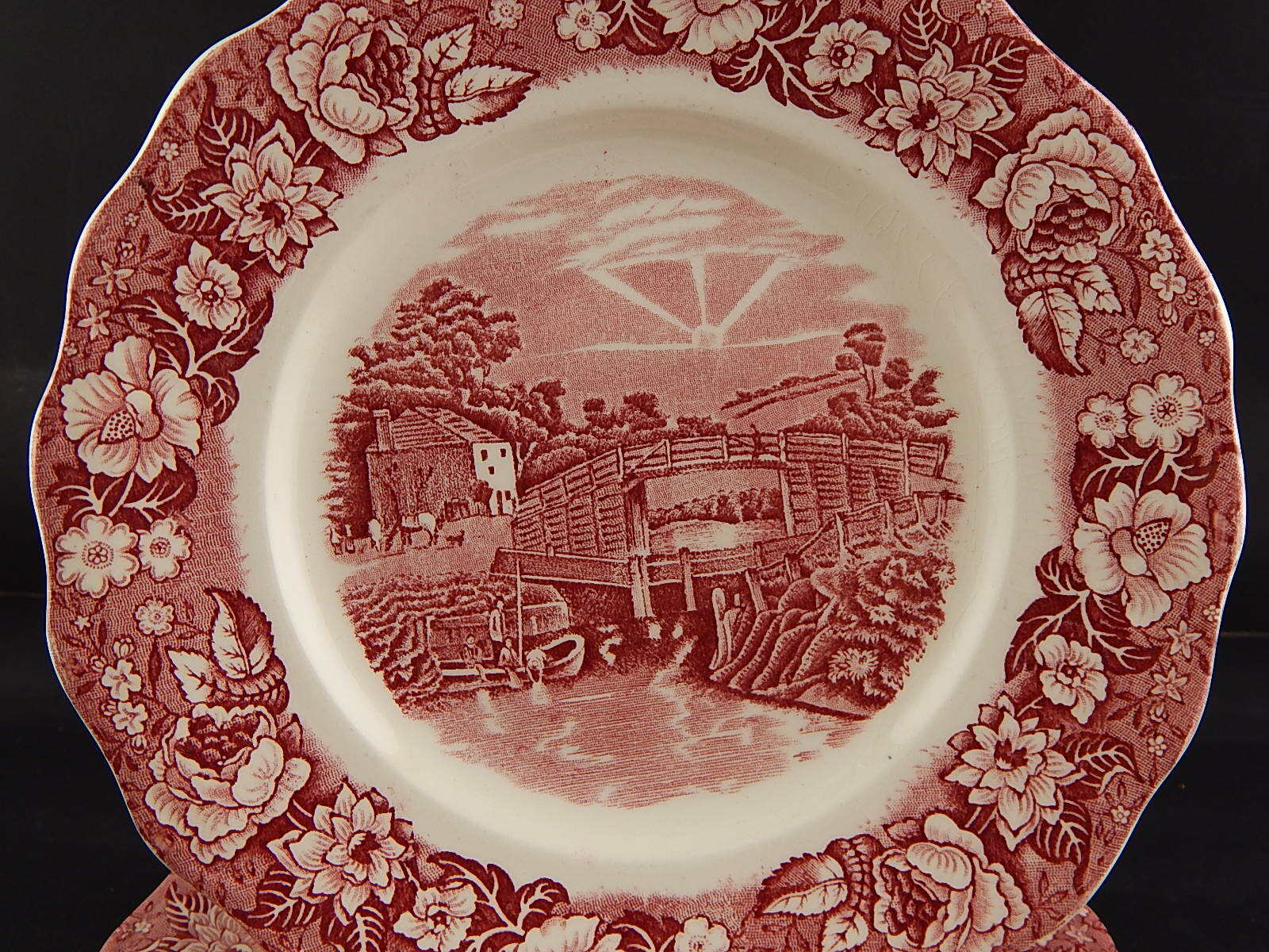 In questa inserzione viene presentato un servizio composto da 4 piatti dessert in semi porcellana realizzato dalla manifattura inglese Palissy Pottery nel disegno stampato a mano Windsor Locke facente parte della collezione Thames River Scenes