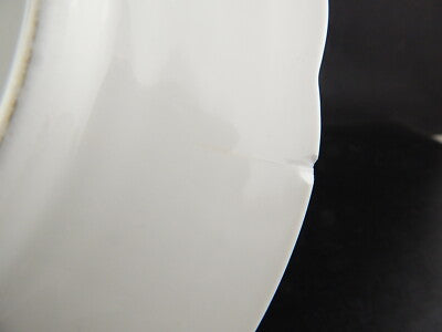 Il servizio è composto da 4 piatti piani da 24,5 cm di diametro e 4 piatti fondi da 24 cm di diametro, come si può vedere dalle foto i piatti hanno tutti delle piccole scheggiature e alcune filature