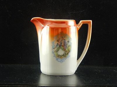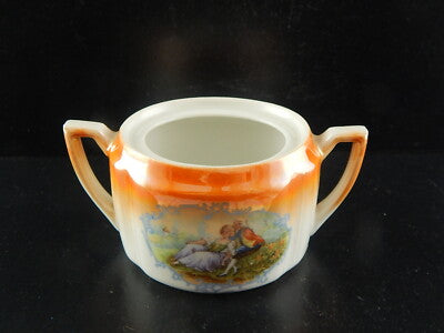 ANTICO SET DA CAFFÈ PORCELLANA DECORO A LUSTRO ARANCIO SCENA GALANTE FINE 800
