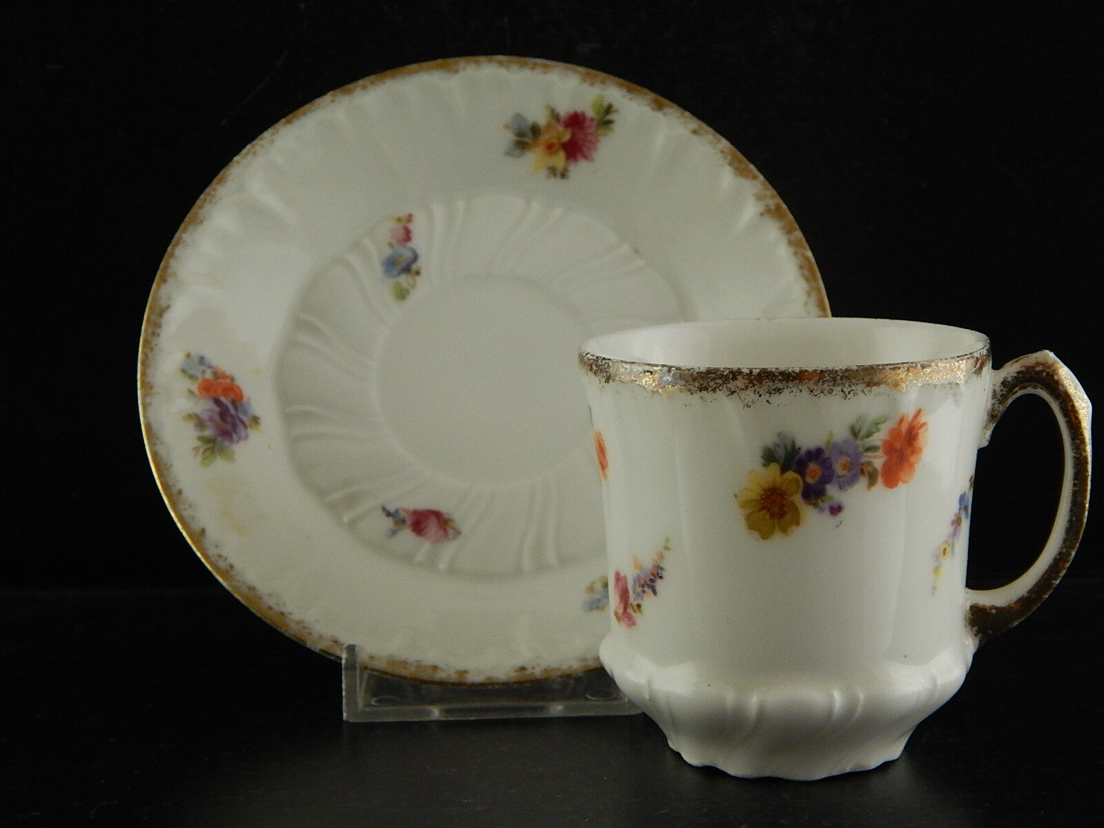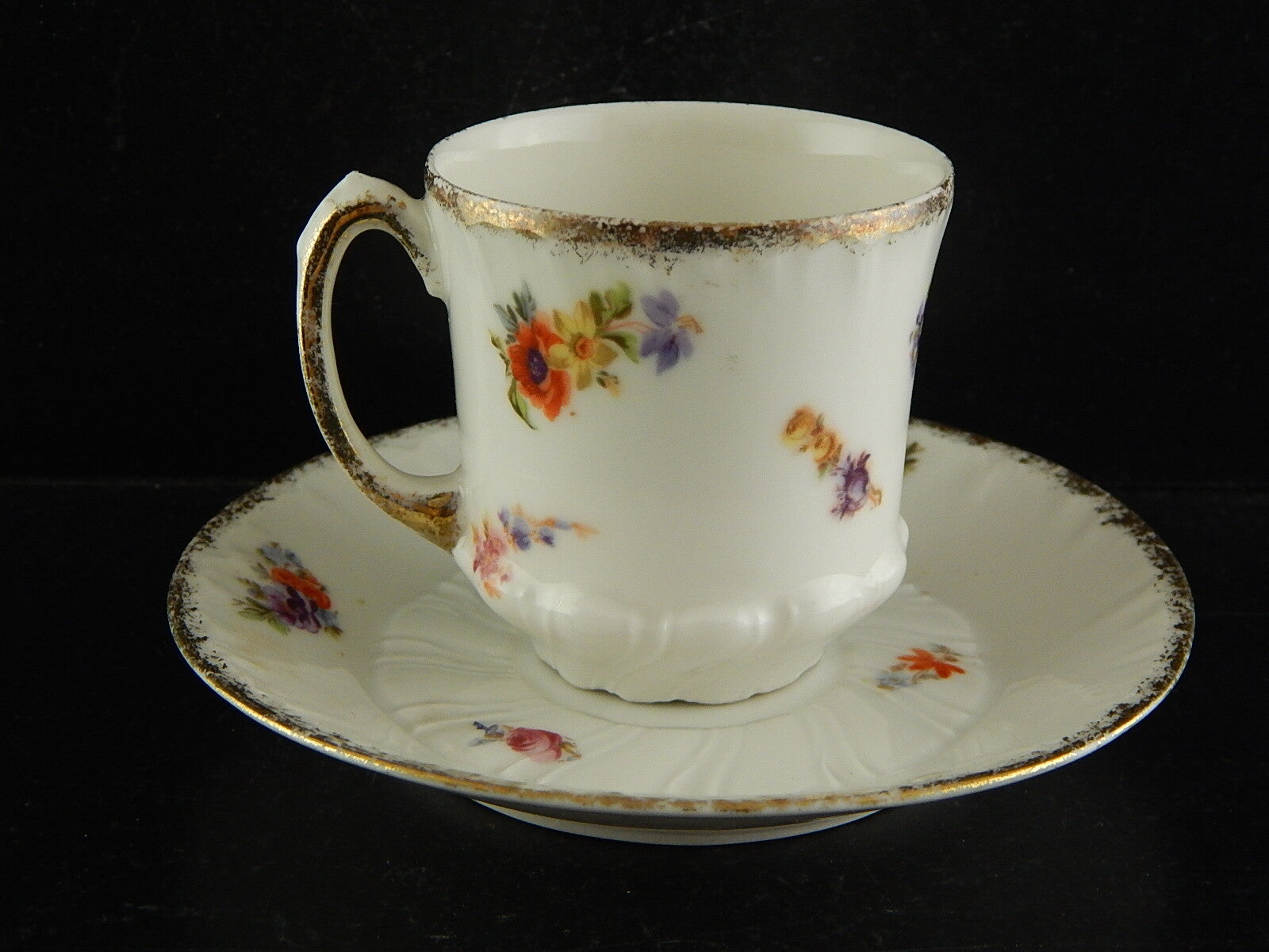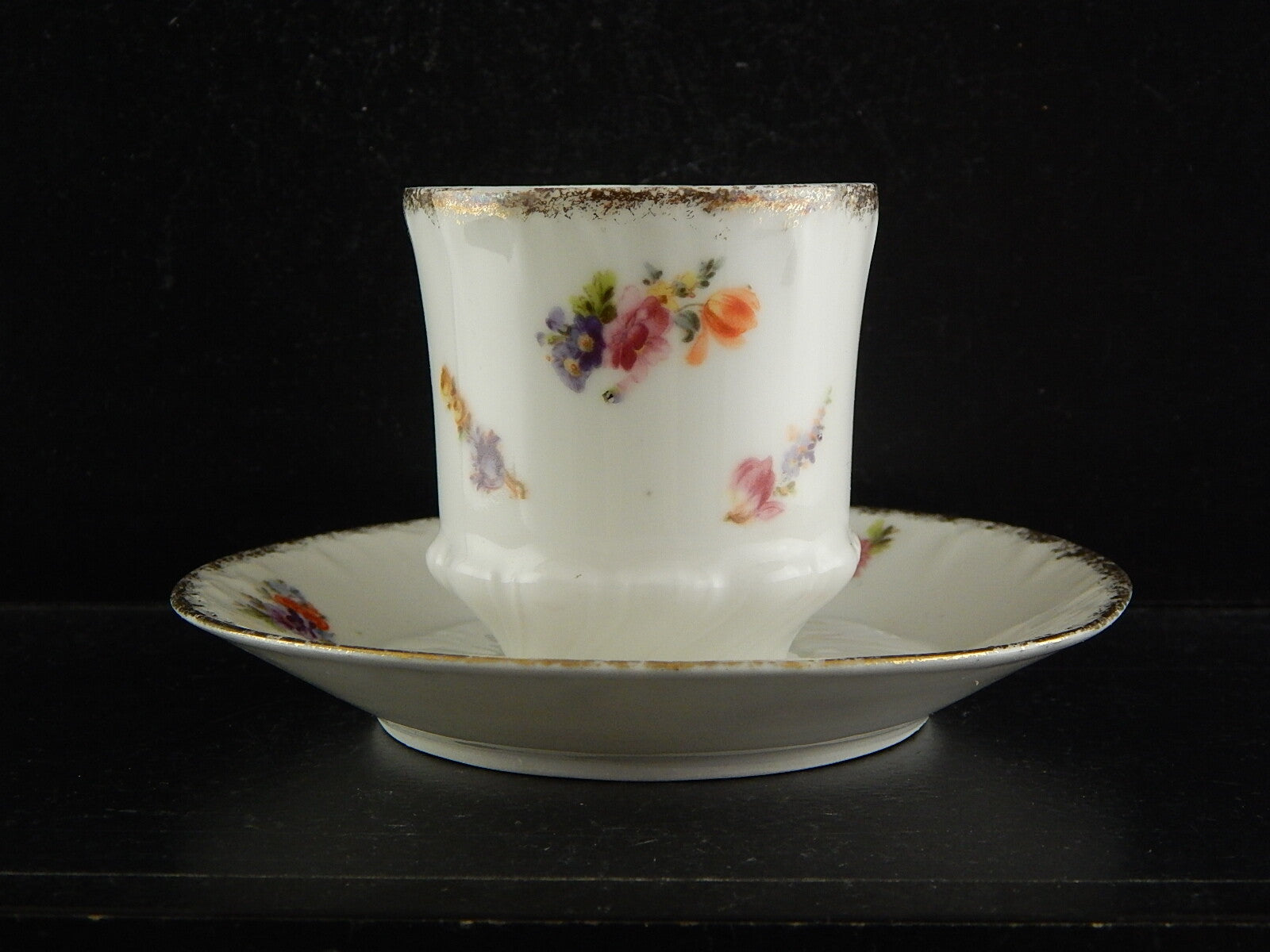 In questa inserzione viene presentata una tazza con piatto in porcellana dipinta a mano e rifinita in oro zecchino dalla manifattura di Limoges come autenticato dal marchio sotto la base da cui si evince che risale ai primi anni del 1900.