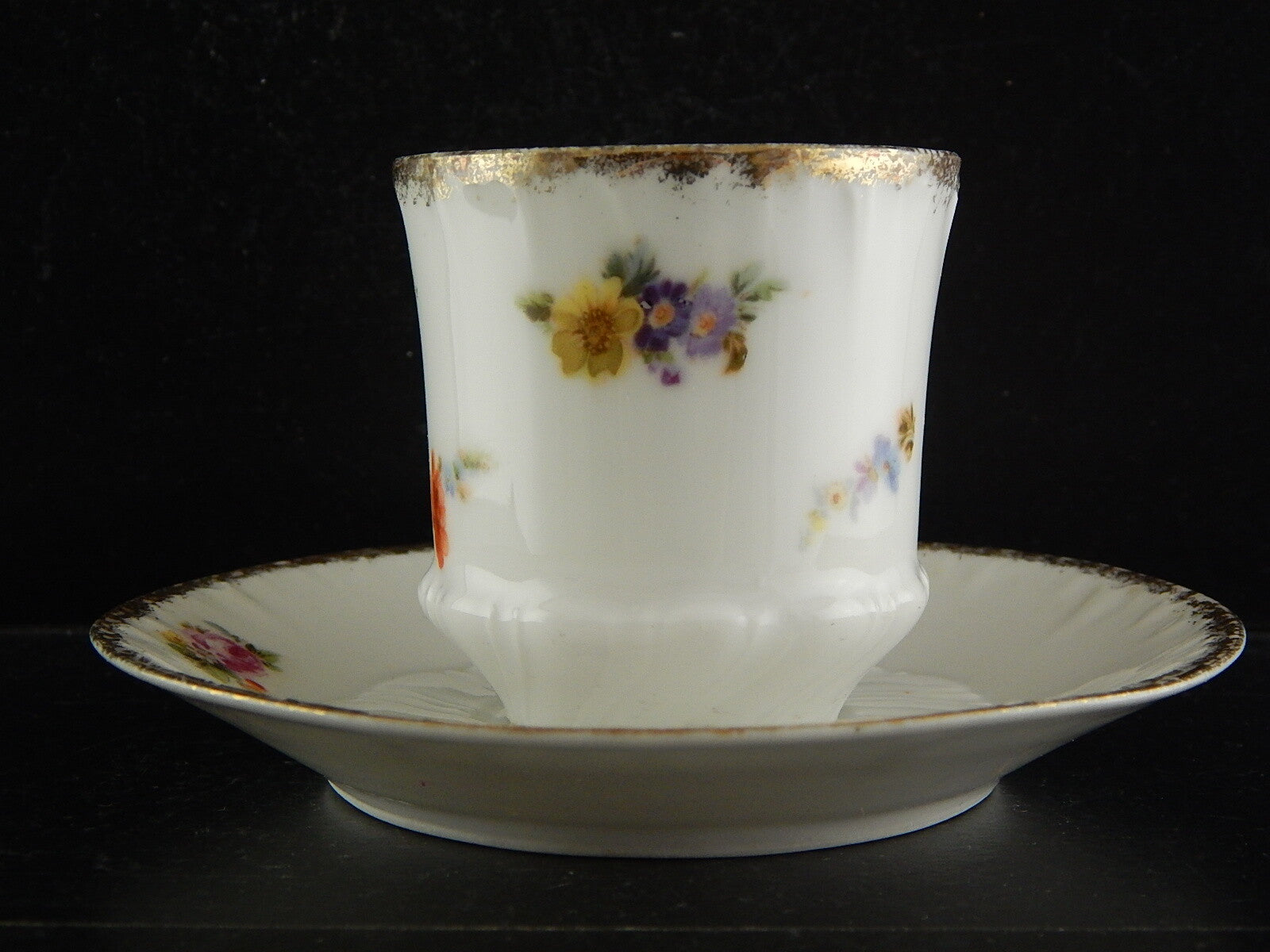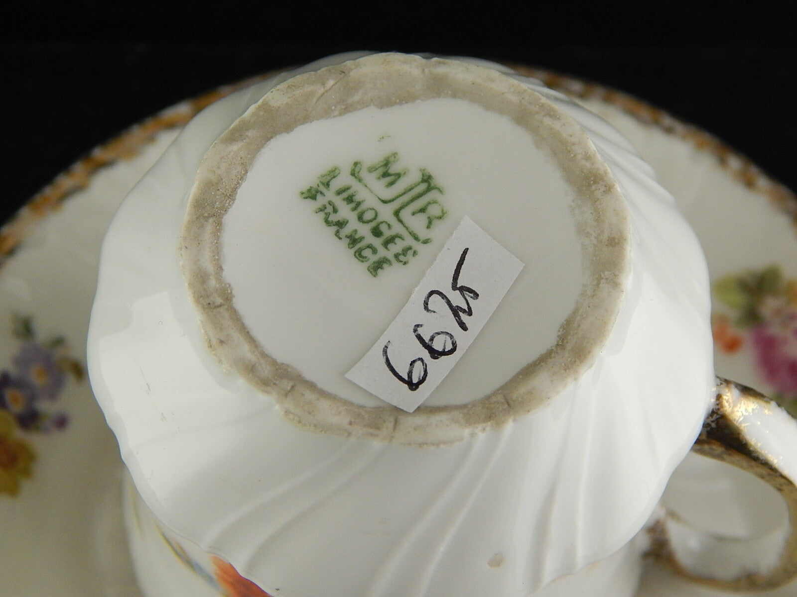 In questa inserzione viene presentata una tazza con piatto in porcellana dipinta a mano e rifinita in oro zecchino dalla manifattura di Limoges come autenticato dal marchio sotto la base da cui si evince che risale ai primi anni del 1900.