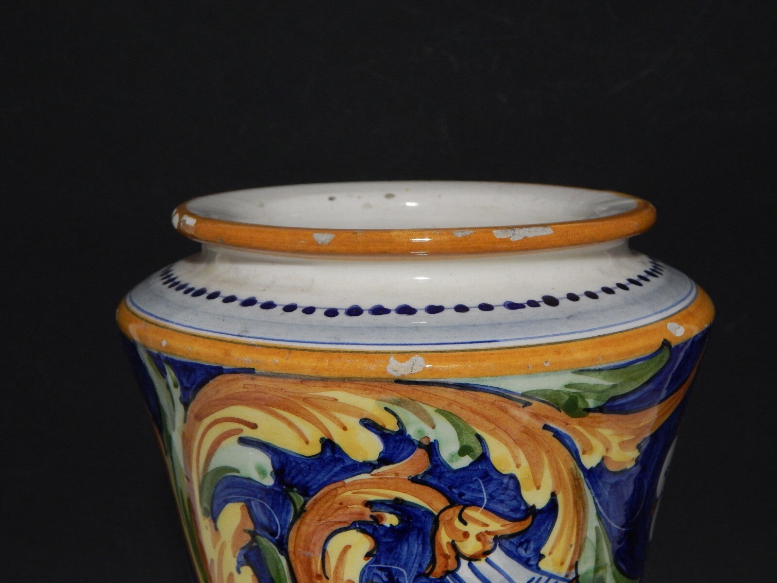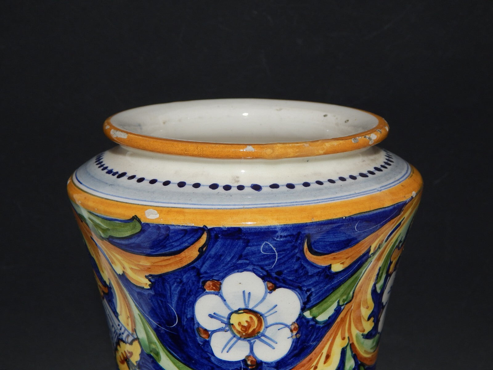 In questa inserzione viene presentato un vaso o albarello realizzato nella seconda metà del 1800 da una bottega di Caltagirone
