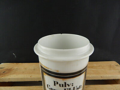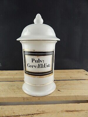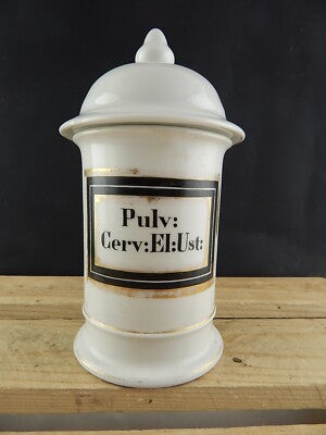 In questa inserzione viene presentato un antico vaso da farmacia in porcellana bianca decorato e dipinto a mano in oro zecchino e nero