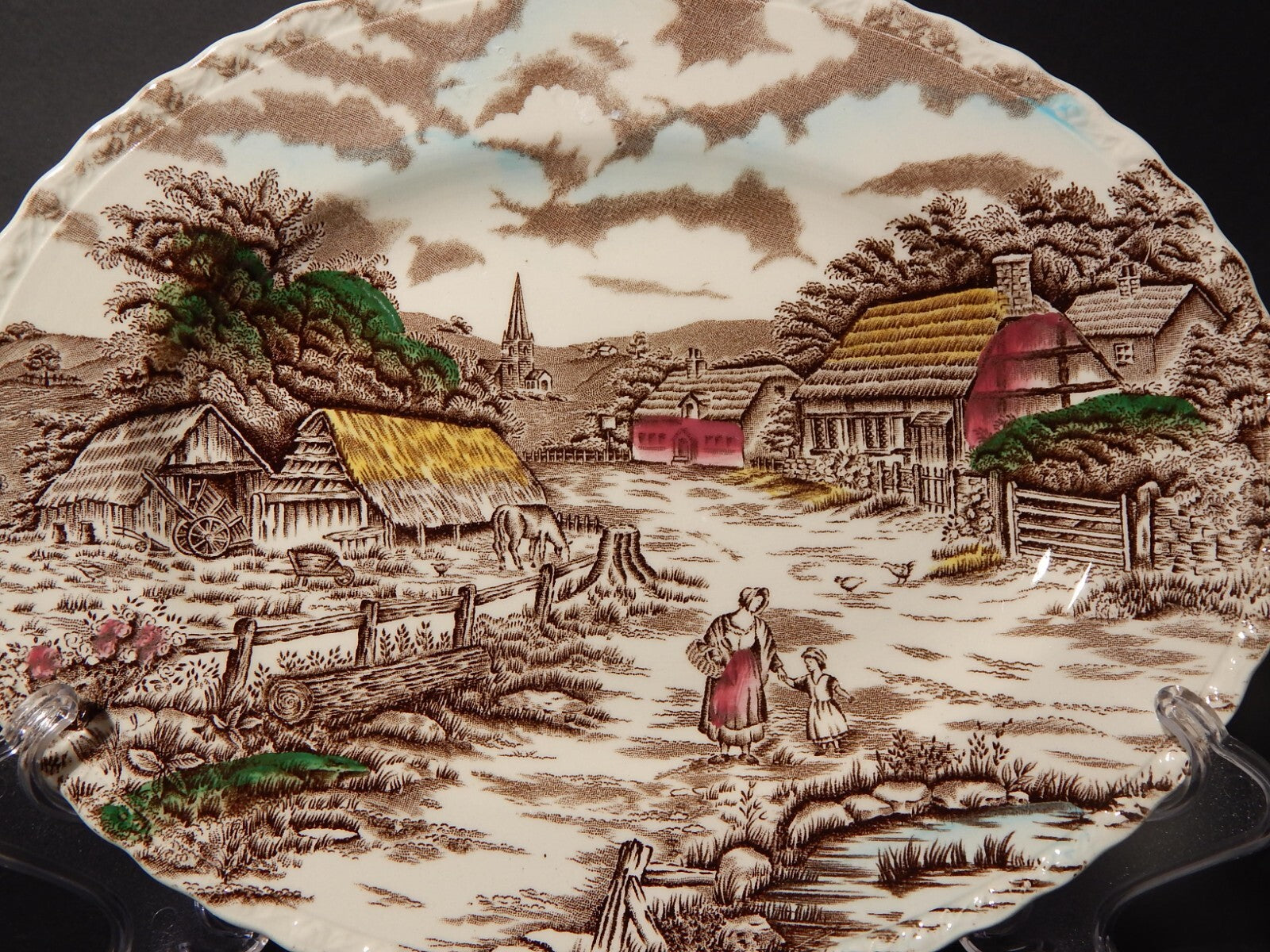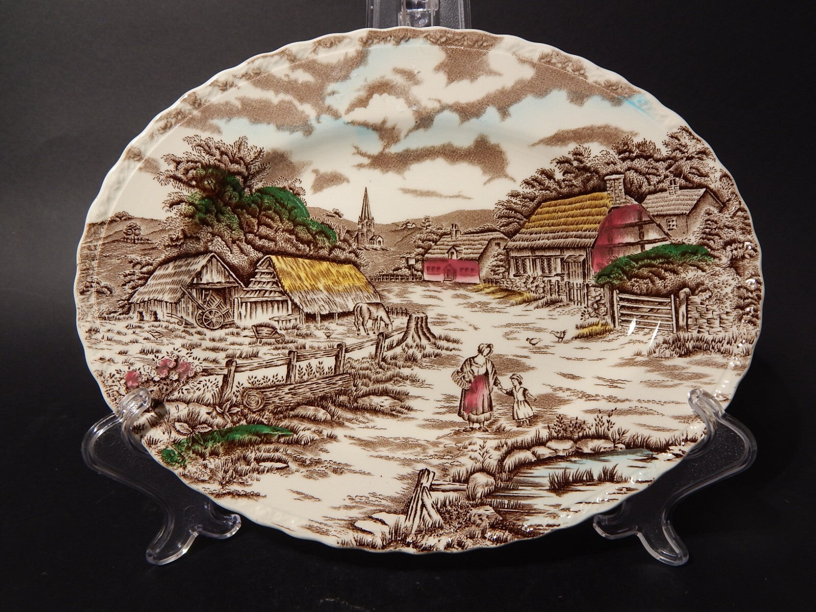 ANTICO VASSOIO CERAMICA INGLESE MYOTT DISEGNO RURAL SCENE STAMPA A MANO