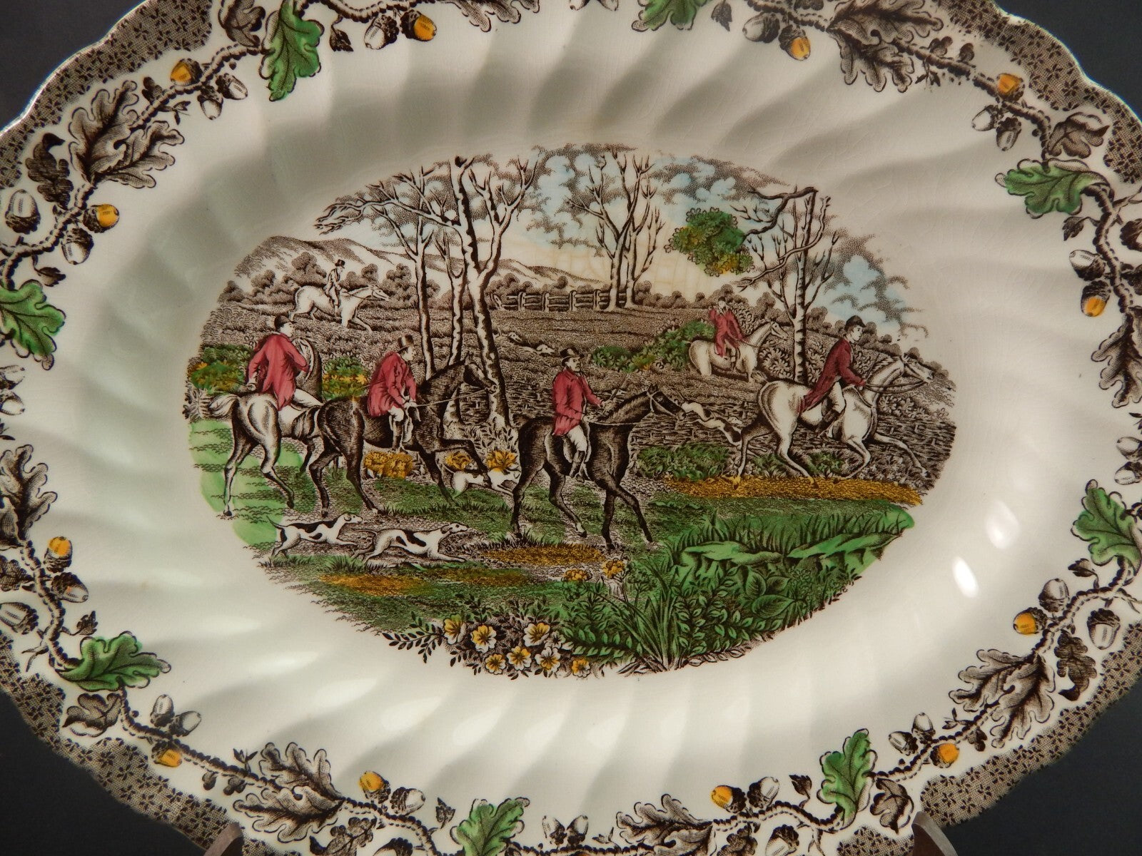 In questa inserzione viene presentata un antico vassoio di ceramica inglese realizzato dalla manifattura Myott Staffordshire nel decoro stampato a mano sotto smalto Country Life