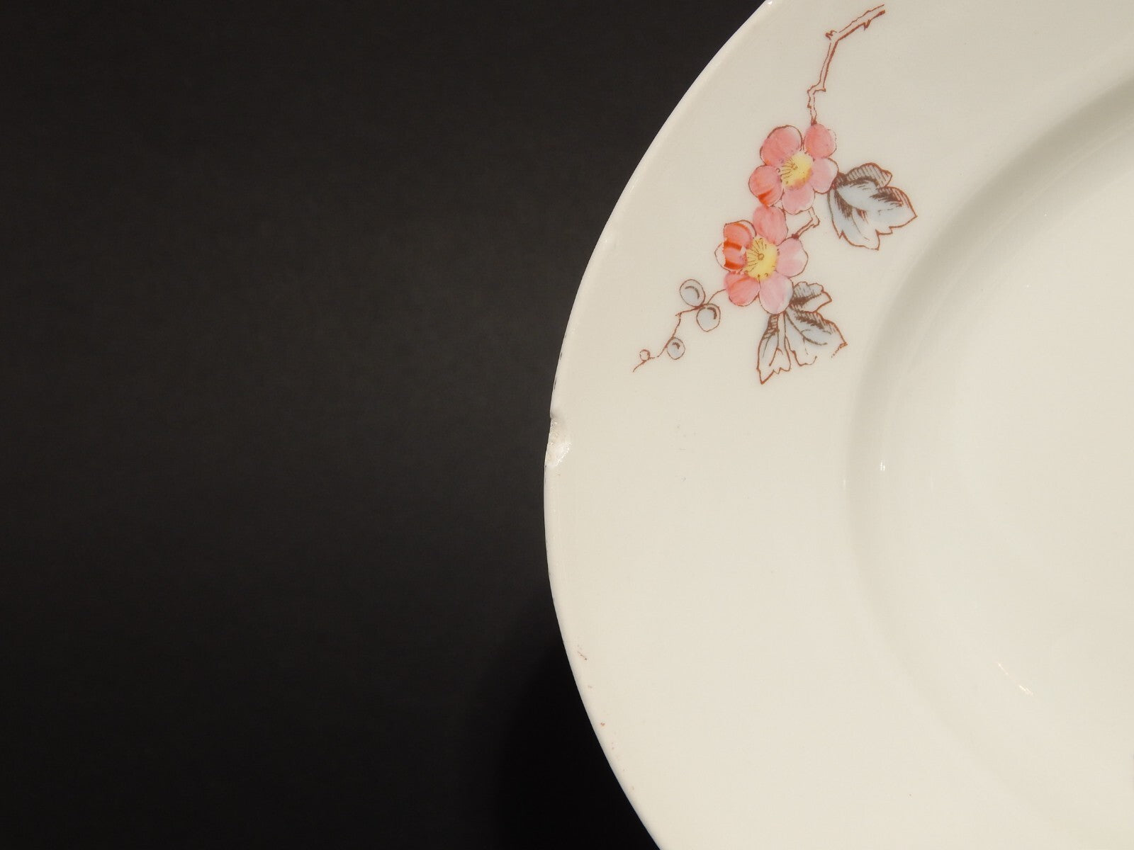 ANTICO VASSOIO PIATTO PORTATA PORCELLANA GINORI FINE 800 RAMO FIORITO difetto
