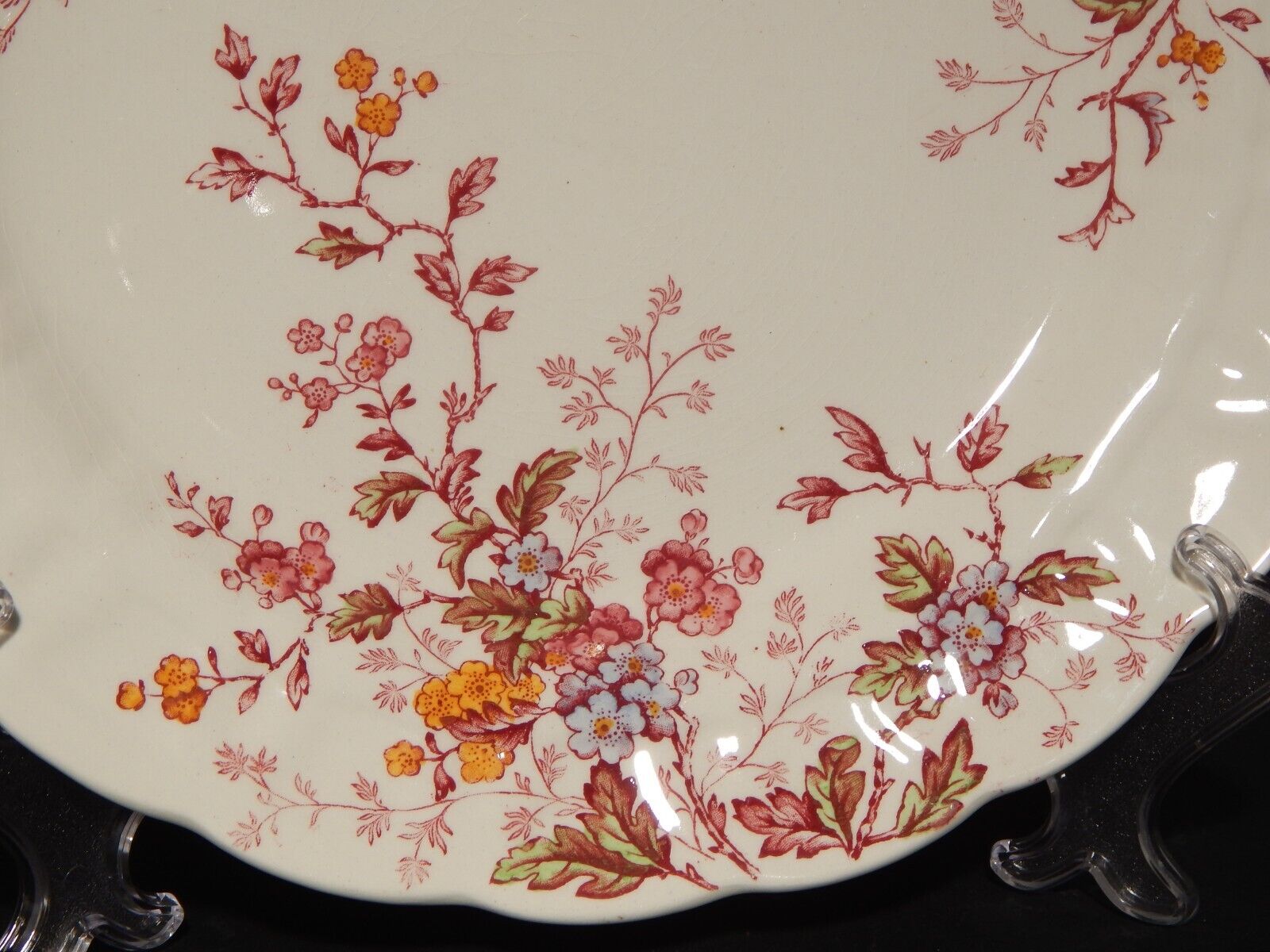 In questa inserzione viene presentato un vassoio rotondo realizzato nei primi anni del 1900 dalla rinomata manifattura inglese Booths nel famoso decoro Washington sui toni del rosa