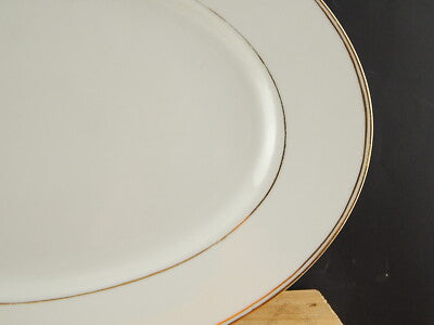 Il vassoio in porcellana bianca è rifinito in oro zecchino e misura 45 x 31 cm