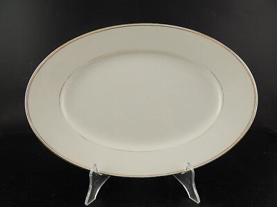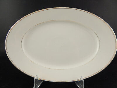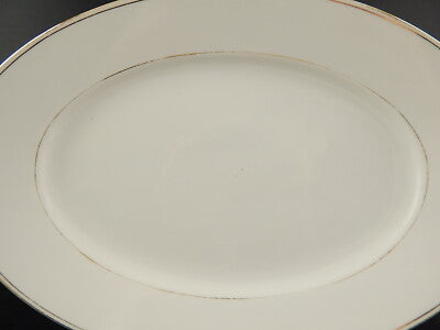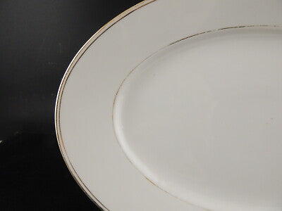 Il vassoio in porcellana bianca è rifinito in oro zecchino e misura 33 x 22,5 cm