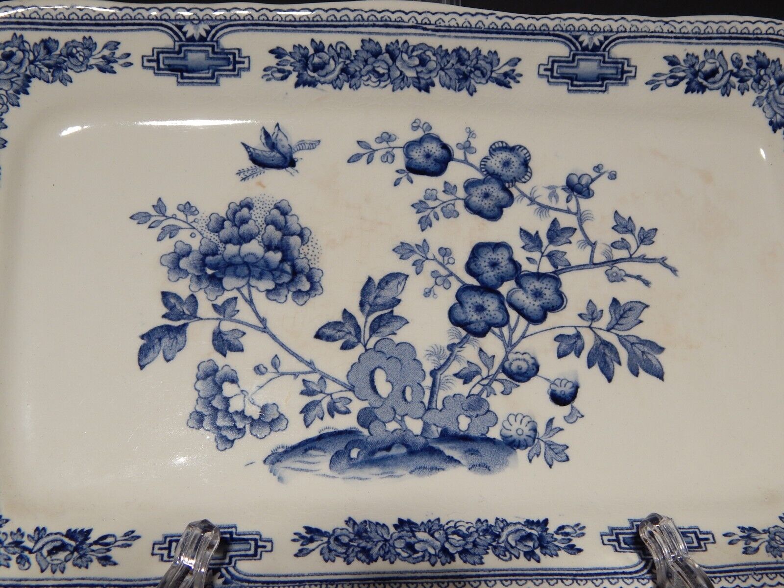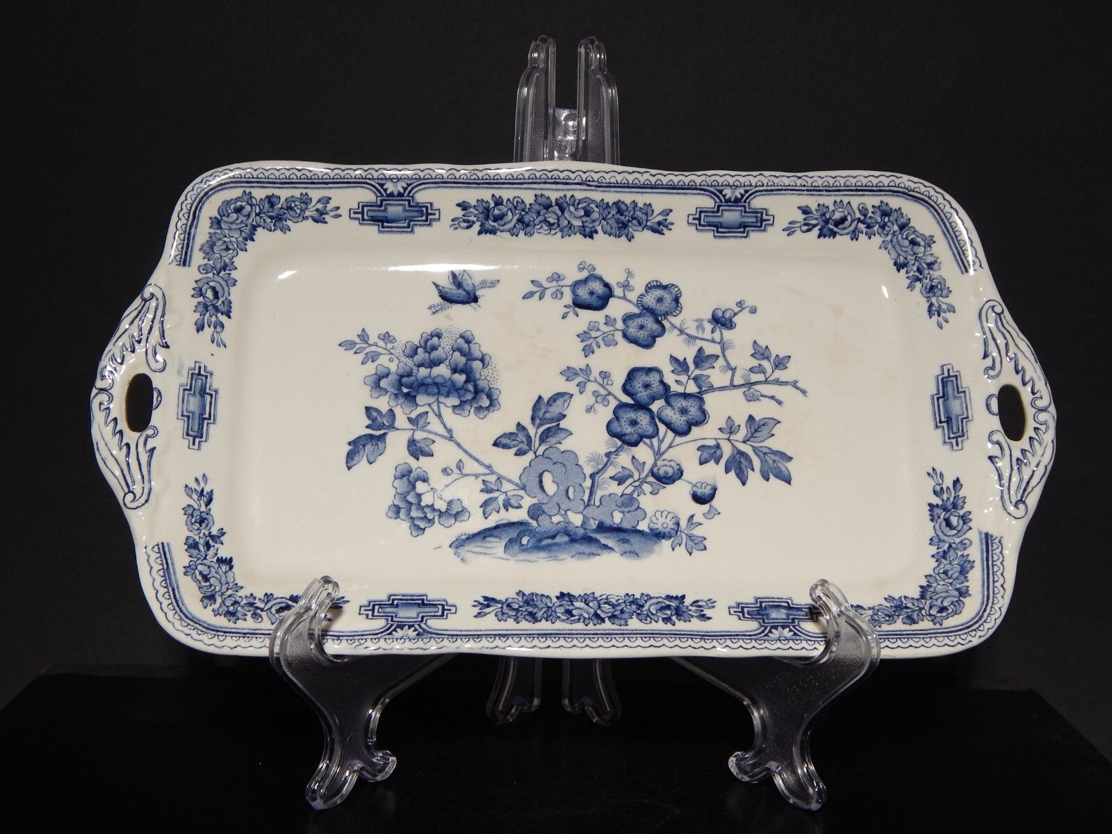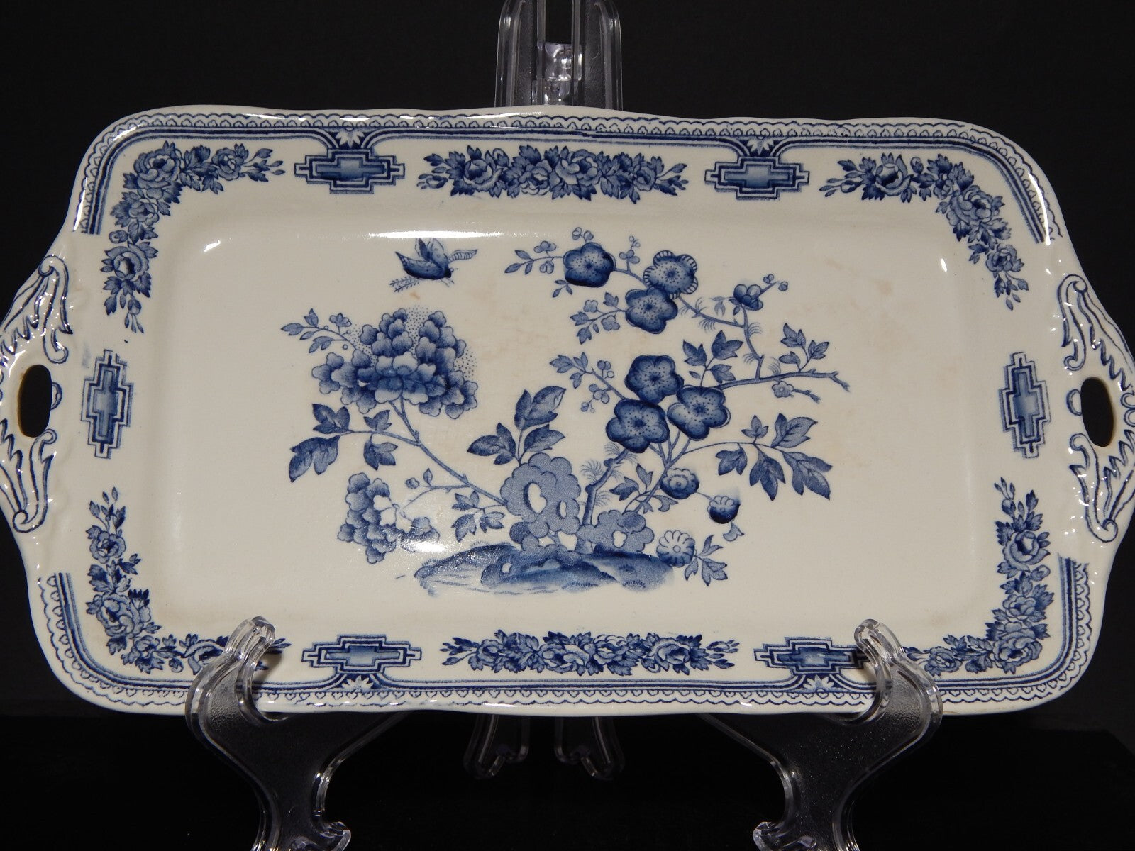 ANTICO VASSOIO SANDWICH APERITIVO CERAMICA INGLESE MASON’S MANCHU BIANCO BLU