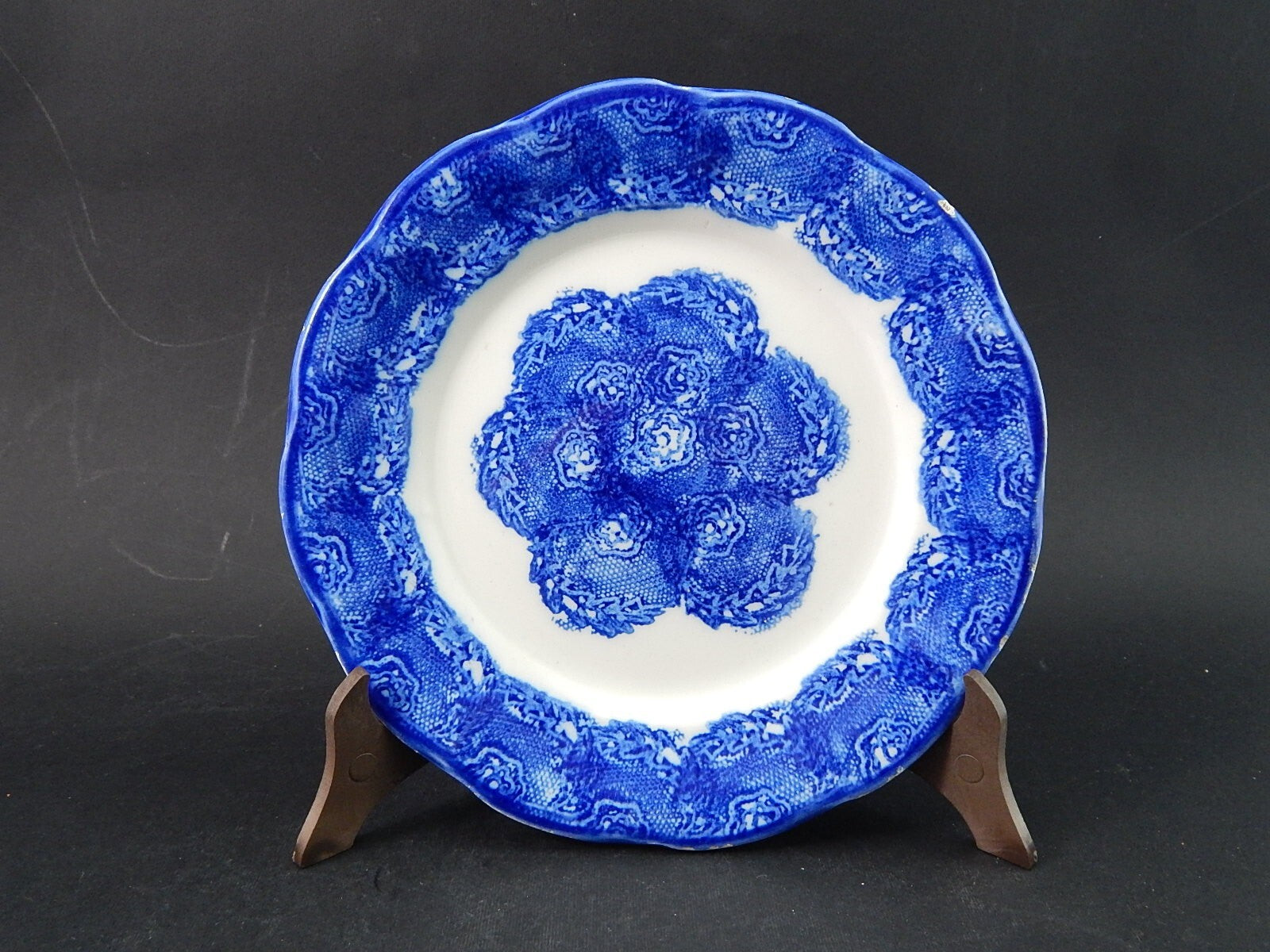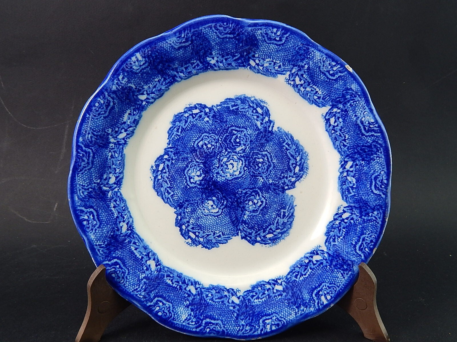 ANTIQUARIATO PIATTO CERAMICA MONDOVÌ META' 1800 BIANCO BLU PIZZO DECORO TAMPONE