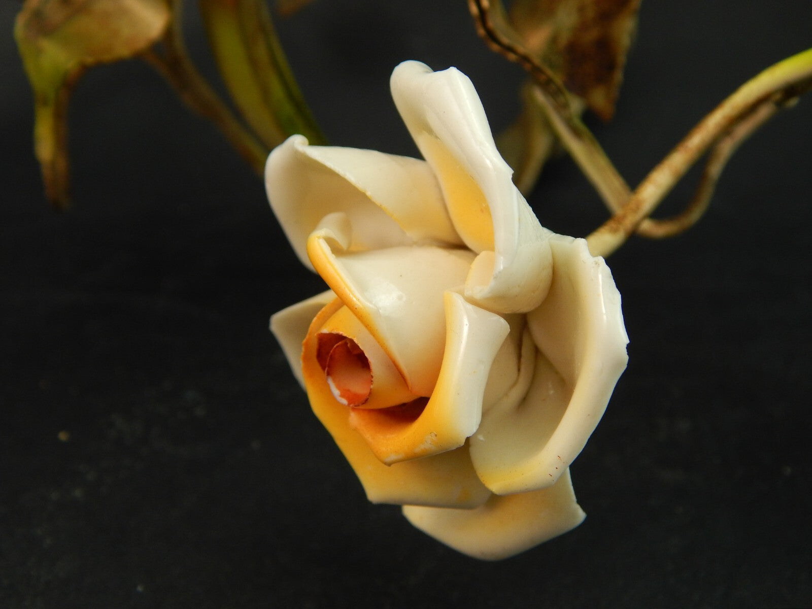APPLIQUE A TRE FUOCHI ANTICA LIBERTY FERRO BATTUTO E ROSE CERAMICA POLICROME