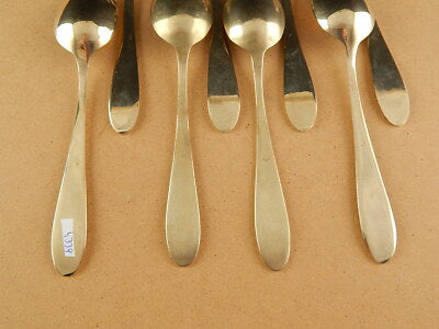 ART DECO ANTICO SERVIZIO 8 POSATE CUCCHIAI ALPACCA DORATI GILDED SPOONS