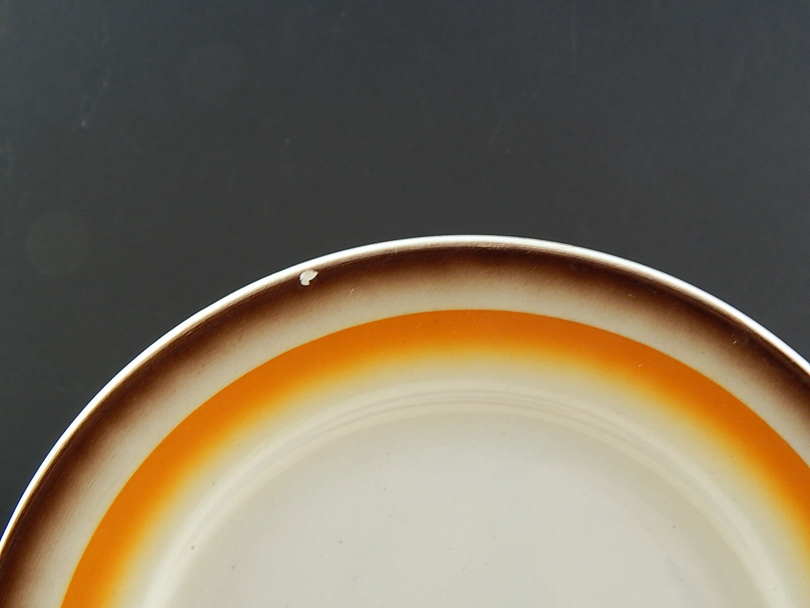 Il piatto è stato disegnato negli anni '30 è decorato con l'aerografo e misura 18,5 cm di diametro, come si può vedere dalle foto ha una minima scheggiatura sul bordo