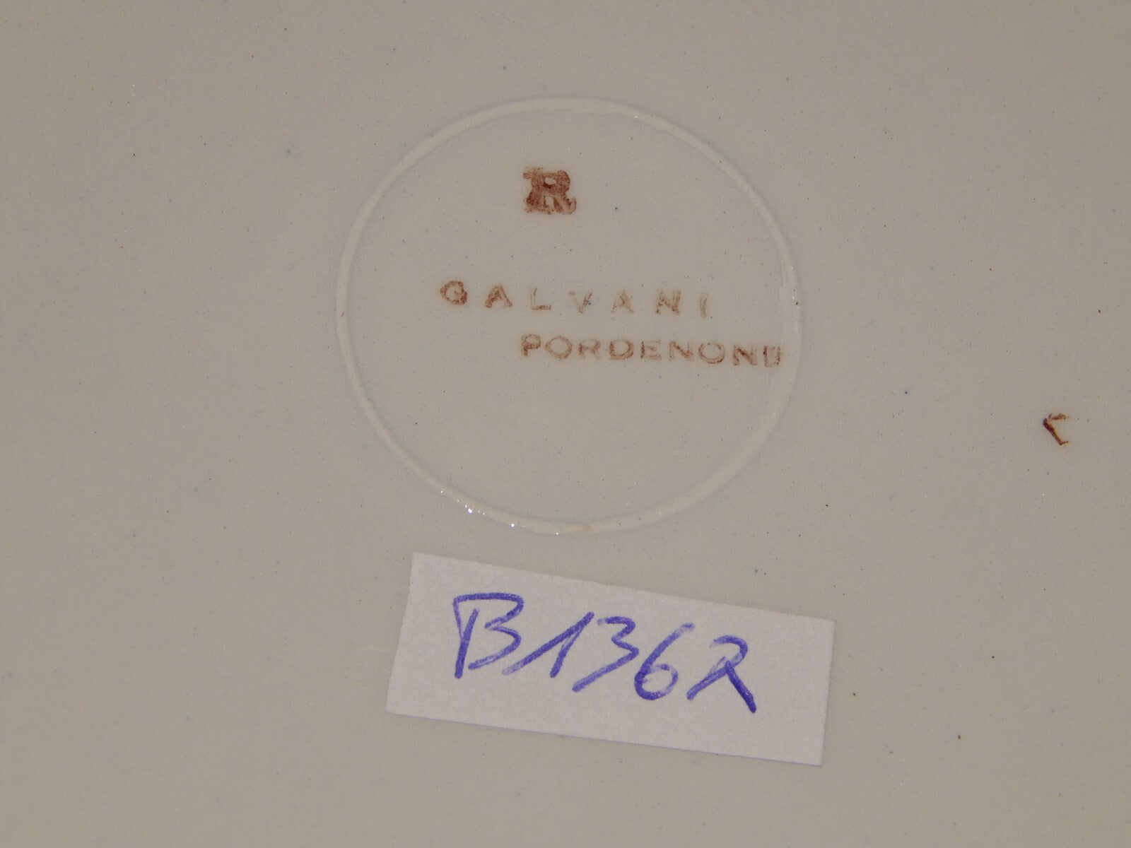 In questa inserzione viene presentato un set composto da 4 piatti piani Art Deco in ceramica realizzato dalla manifattura di Pordenone Galvani, disegnato da Simonetto