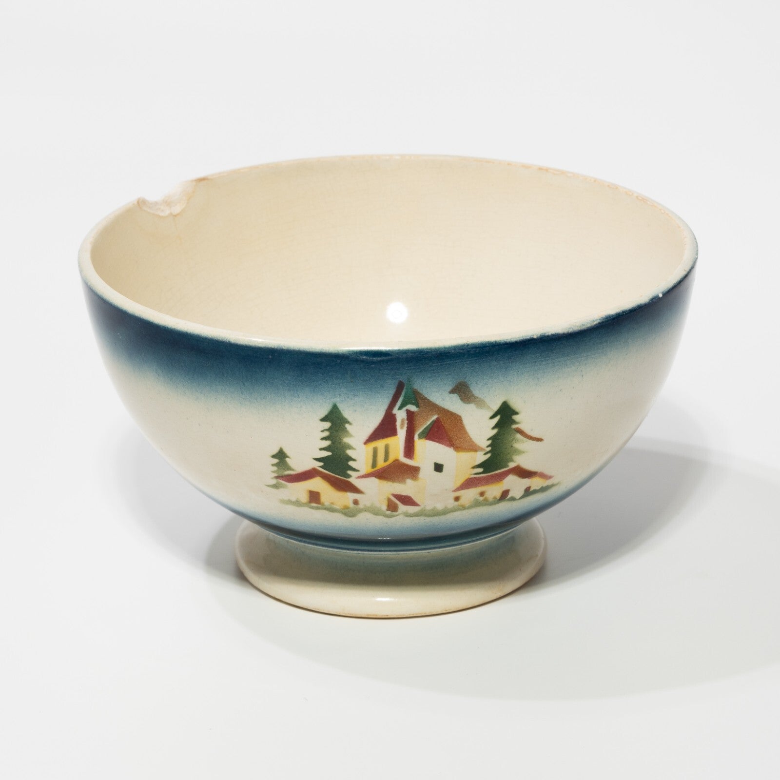 In questa inserzione viene presentata un'antica scodella della manifattura Ceramica Italiana di Laveno, la tazza decorato con l'aerografo misura 15 cm. di diametro e 9 cm. di altezza, come si può vedere dalle foto presenta scheggiature