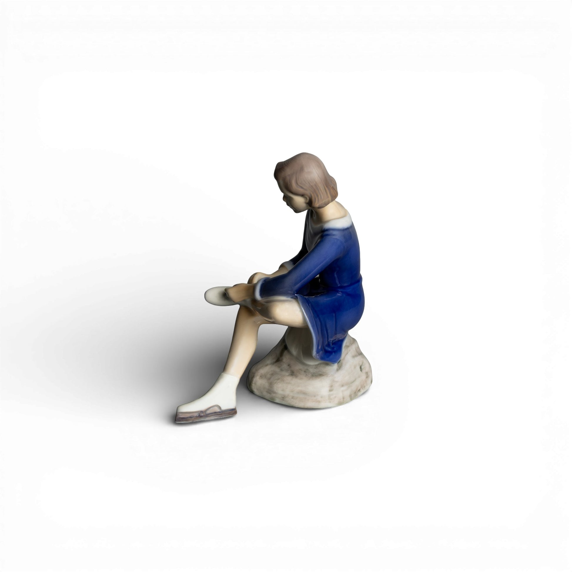 La decorazione sottosmalto conferisce profondità cromatica e luminosità, garantendo al tempo stesso una superficie resistente e duratura. Questa statuina rappresenta un esempio apprezzato della produzione artistica Bing&Grøndahl, particolarmente ricercata dai collezionisti di porcellana figurativa.